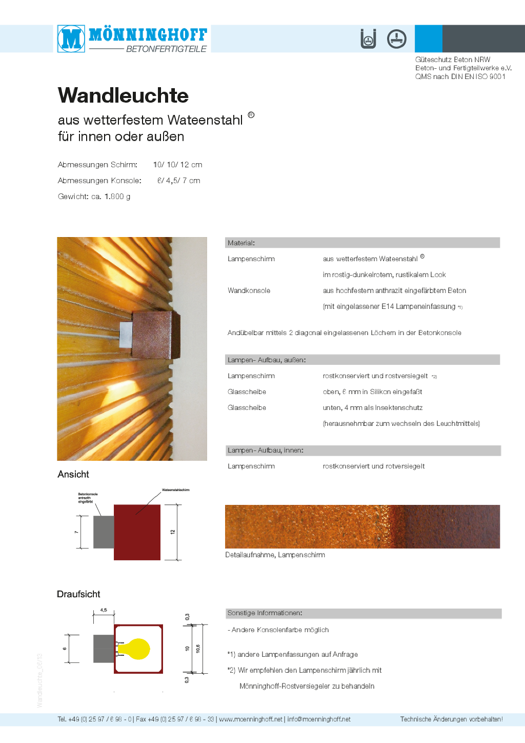 Wandbeleuchtung aus Cortenstahl mit Betonsockel