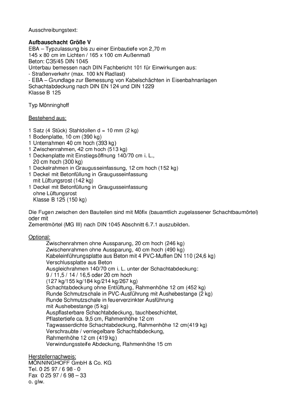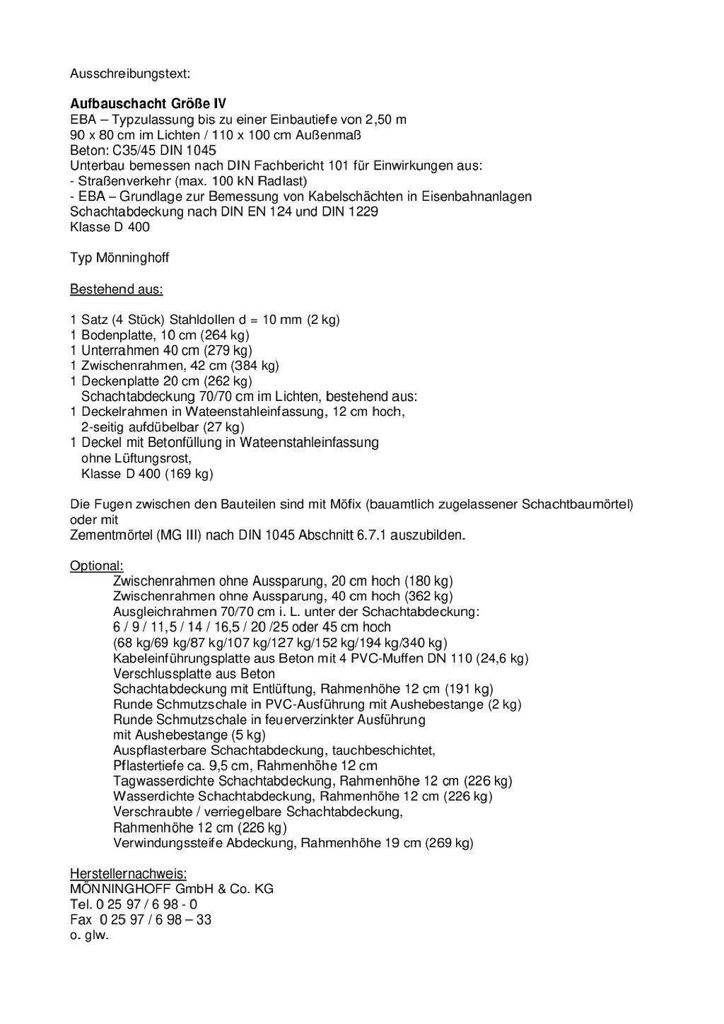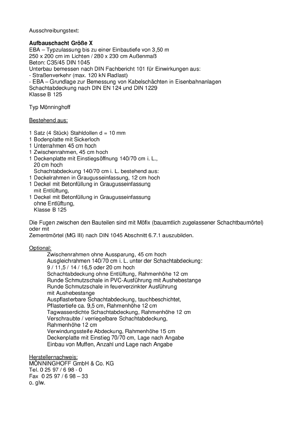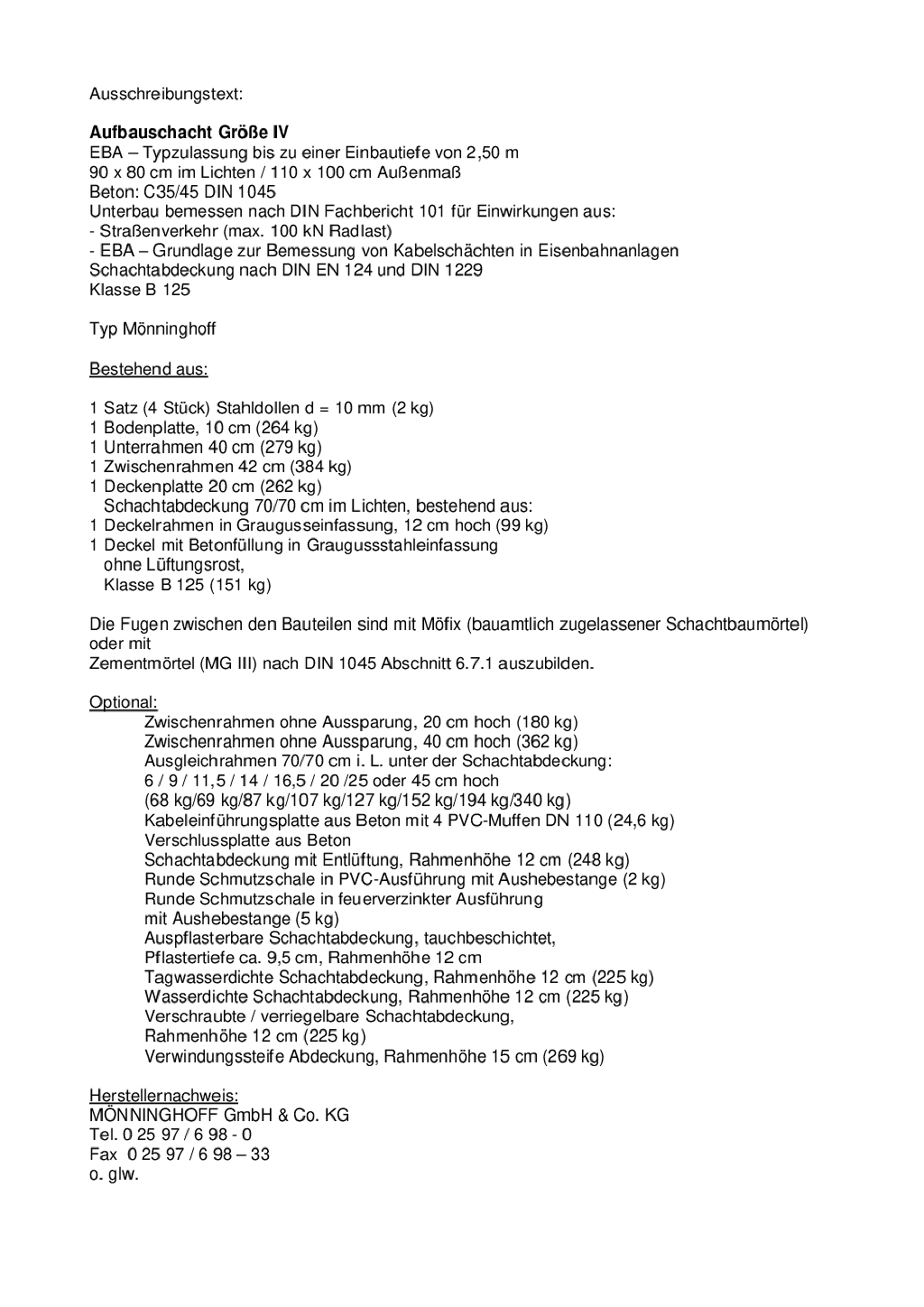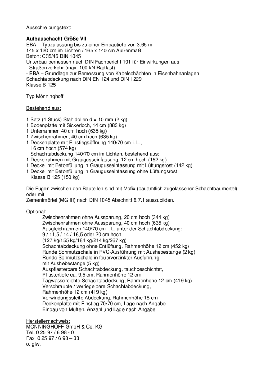 Nachfolgend erhalten Sie die technischen Daten, Ausschreibungstexte und sonstige Informationen als Download.