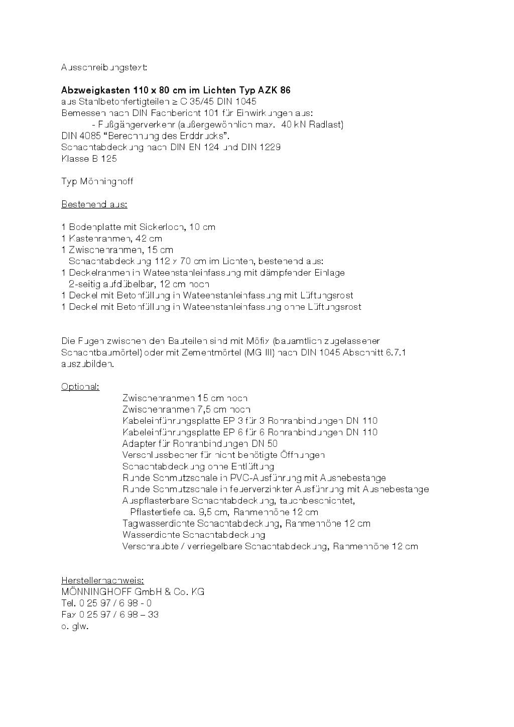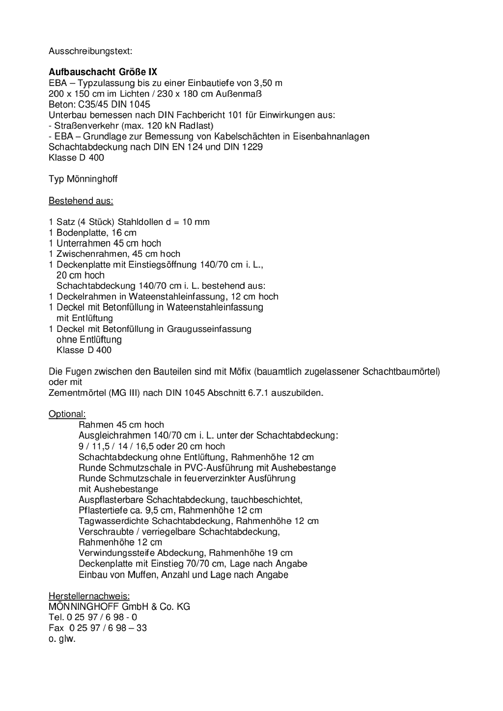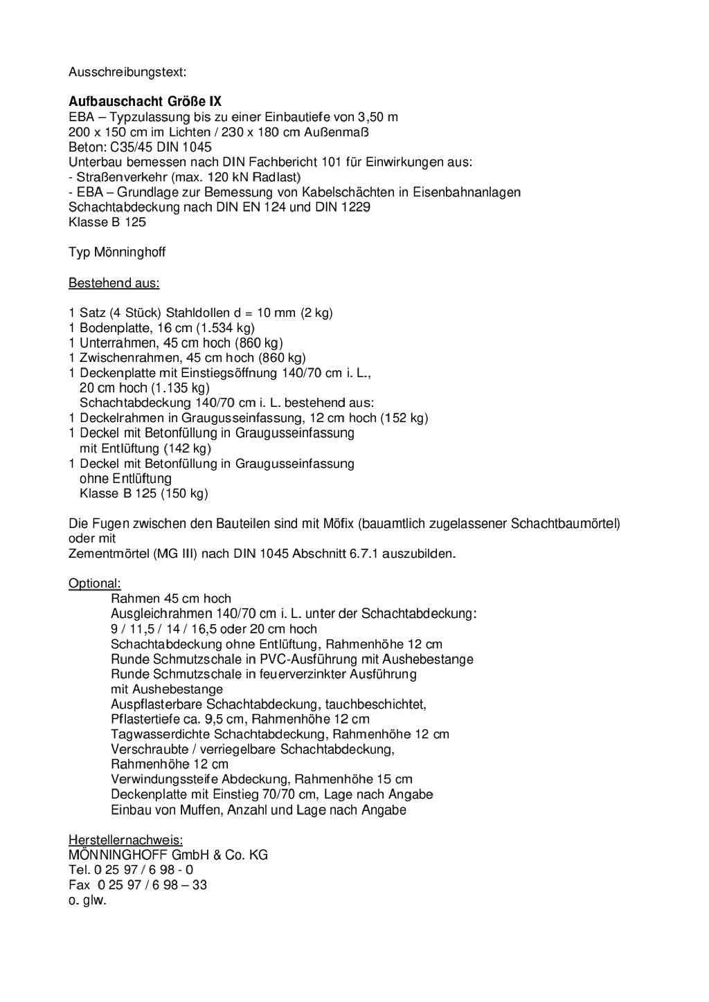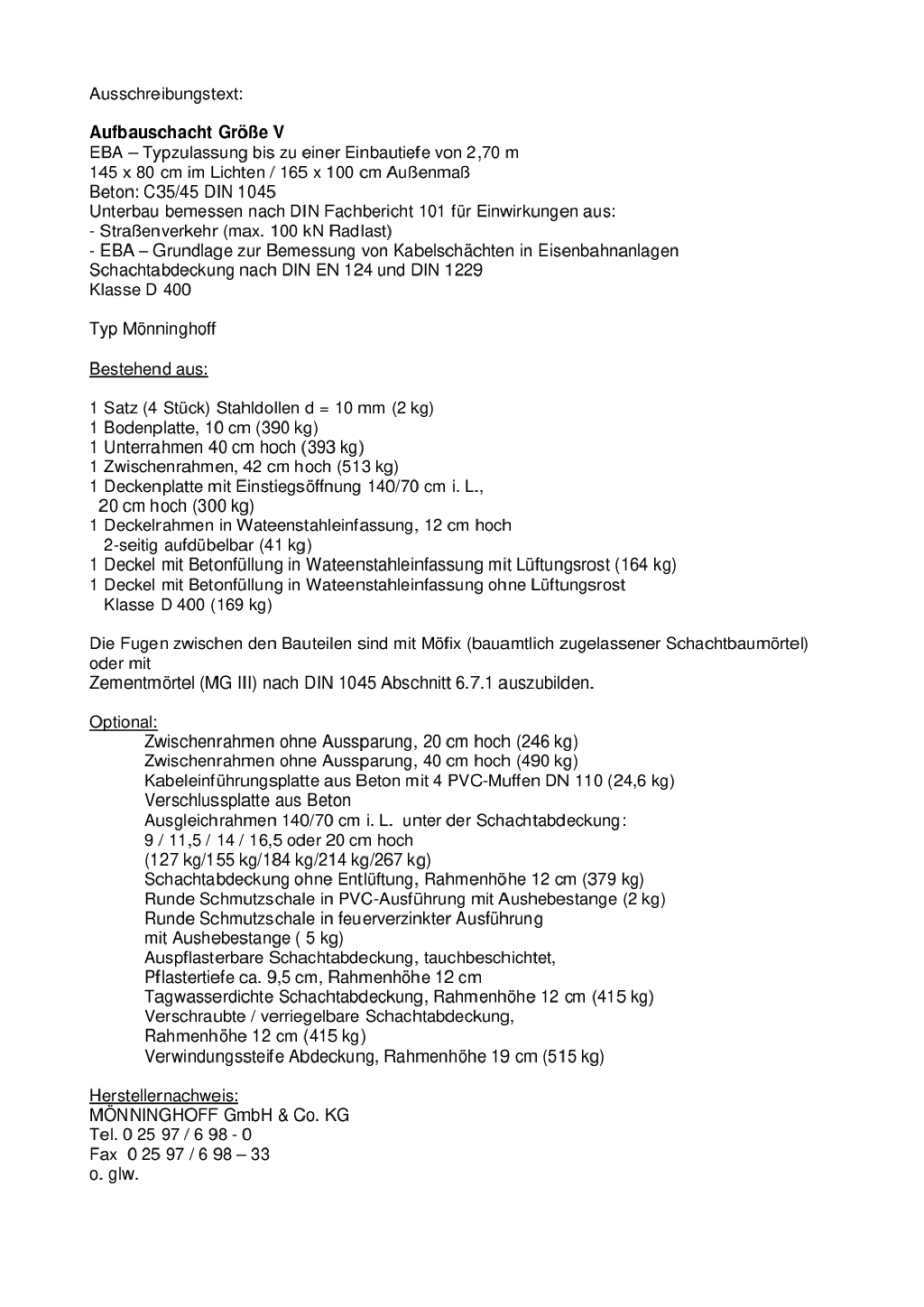 Nachfolgend erhalten Sie die technischen Daten, Ausschreibungstexte und sonstige Informationen als Download.