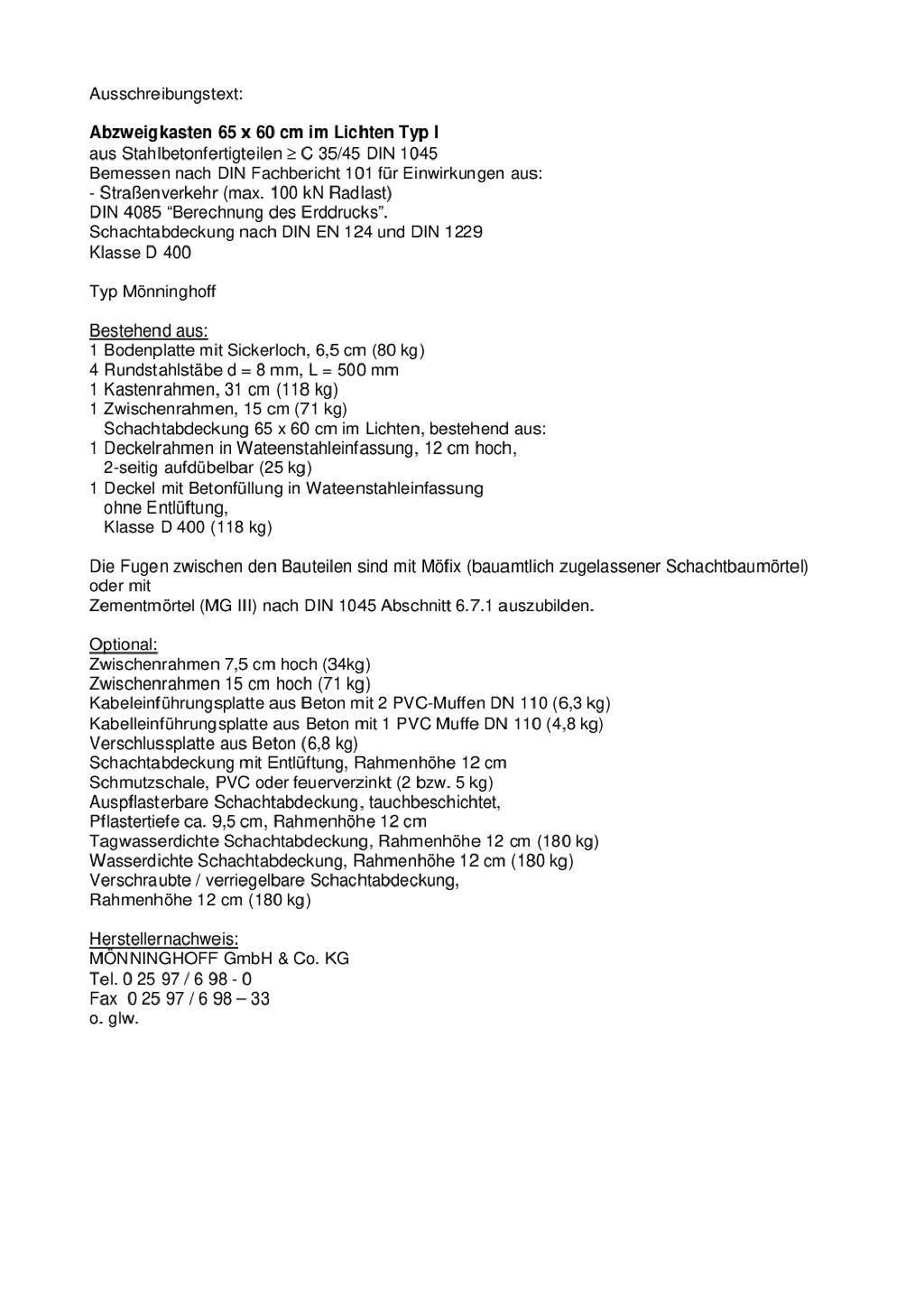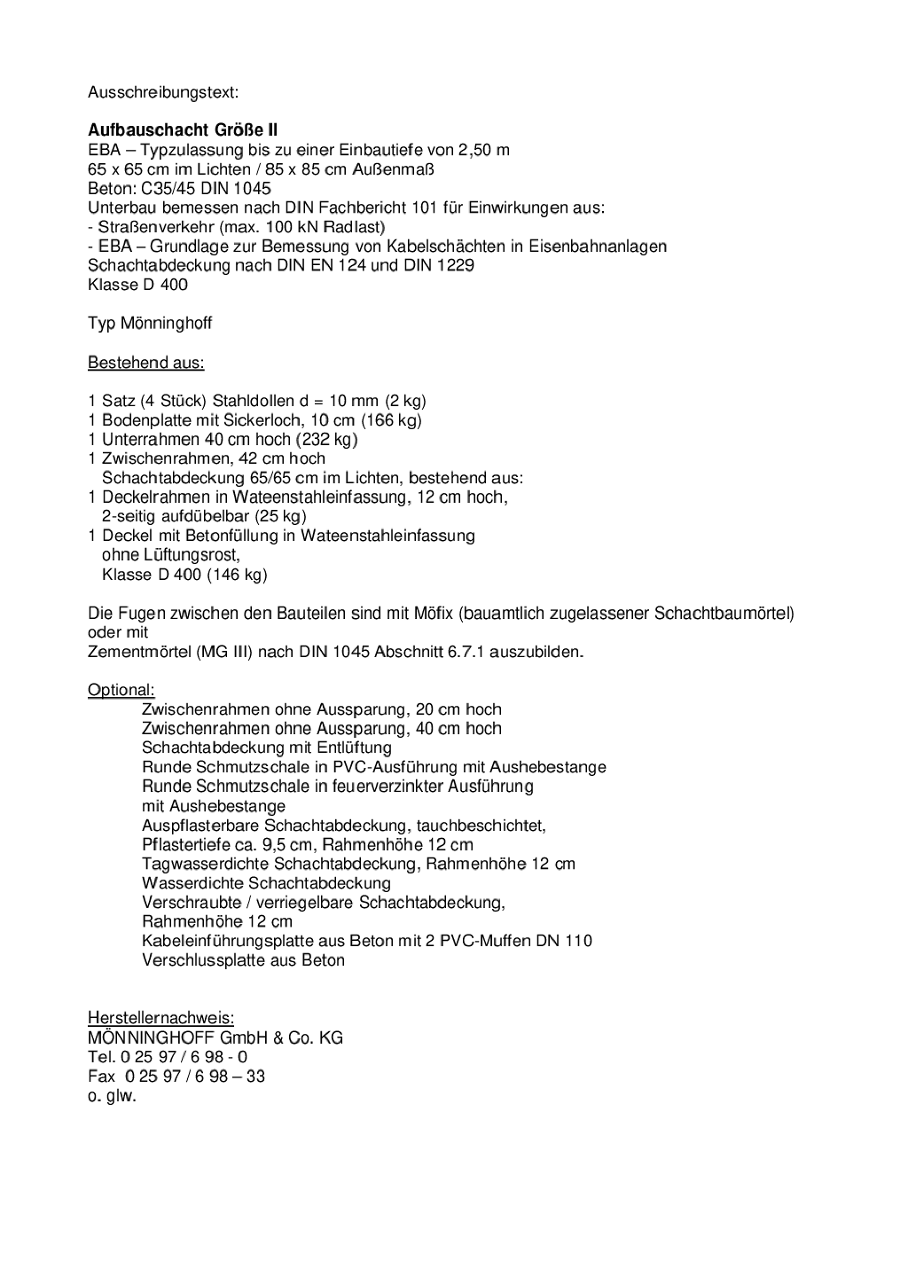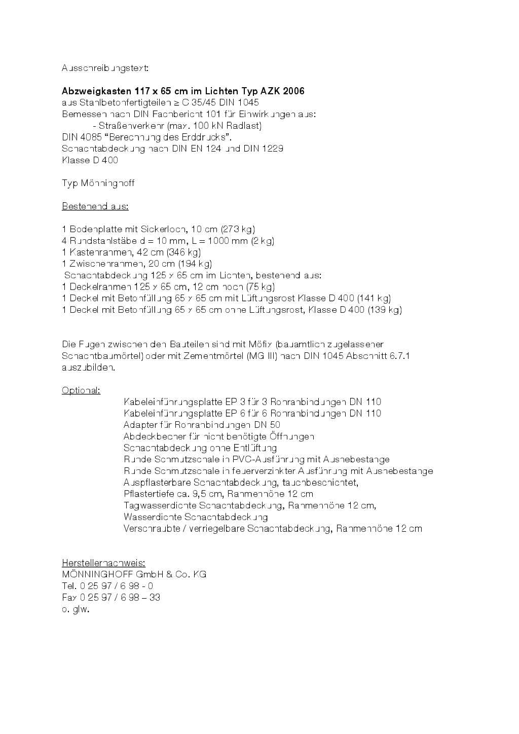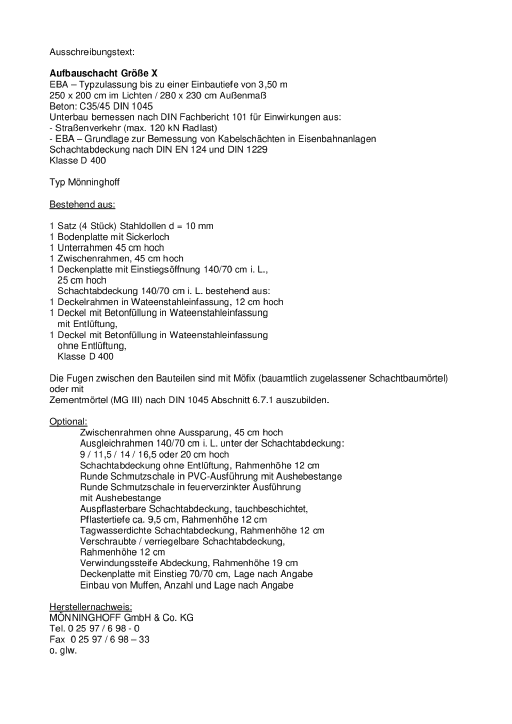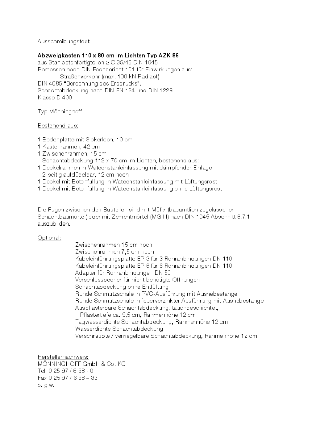 Nachfolgend erhalten Sie die technischen Daten, Ausschreibungstexte und sonstige Informationen als Download.