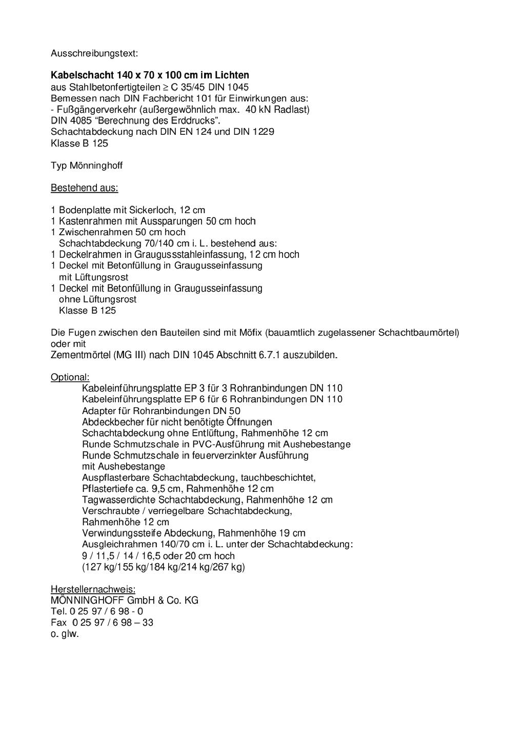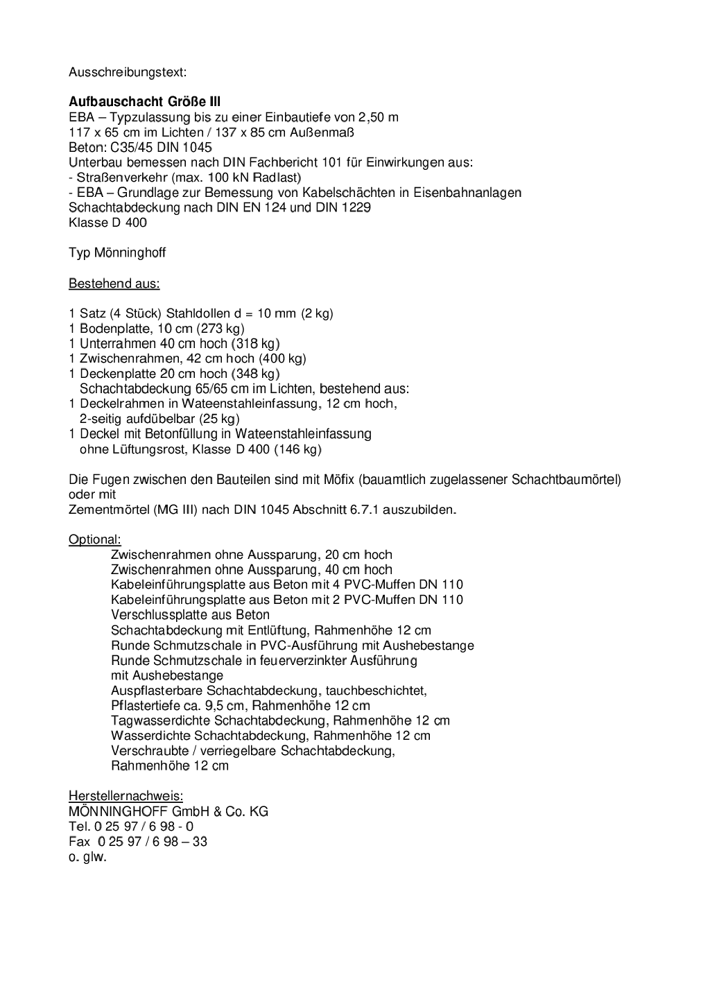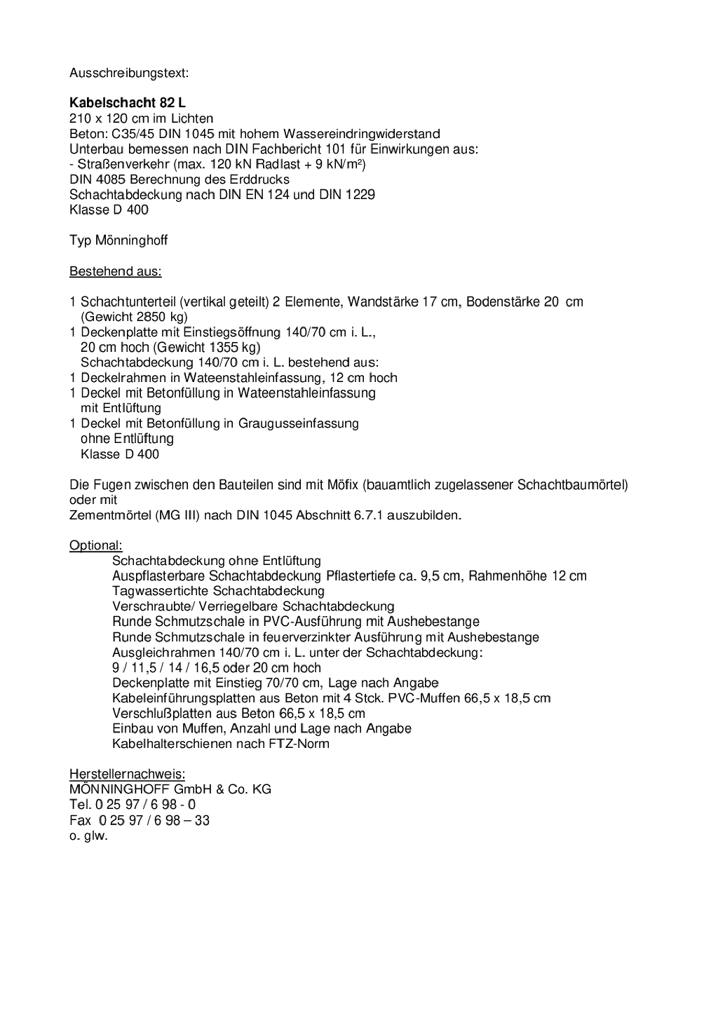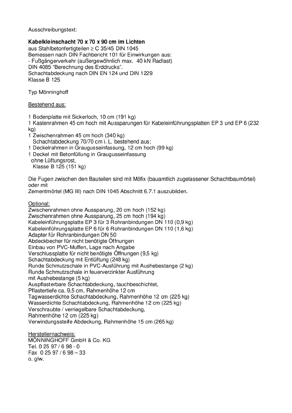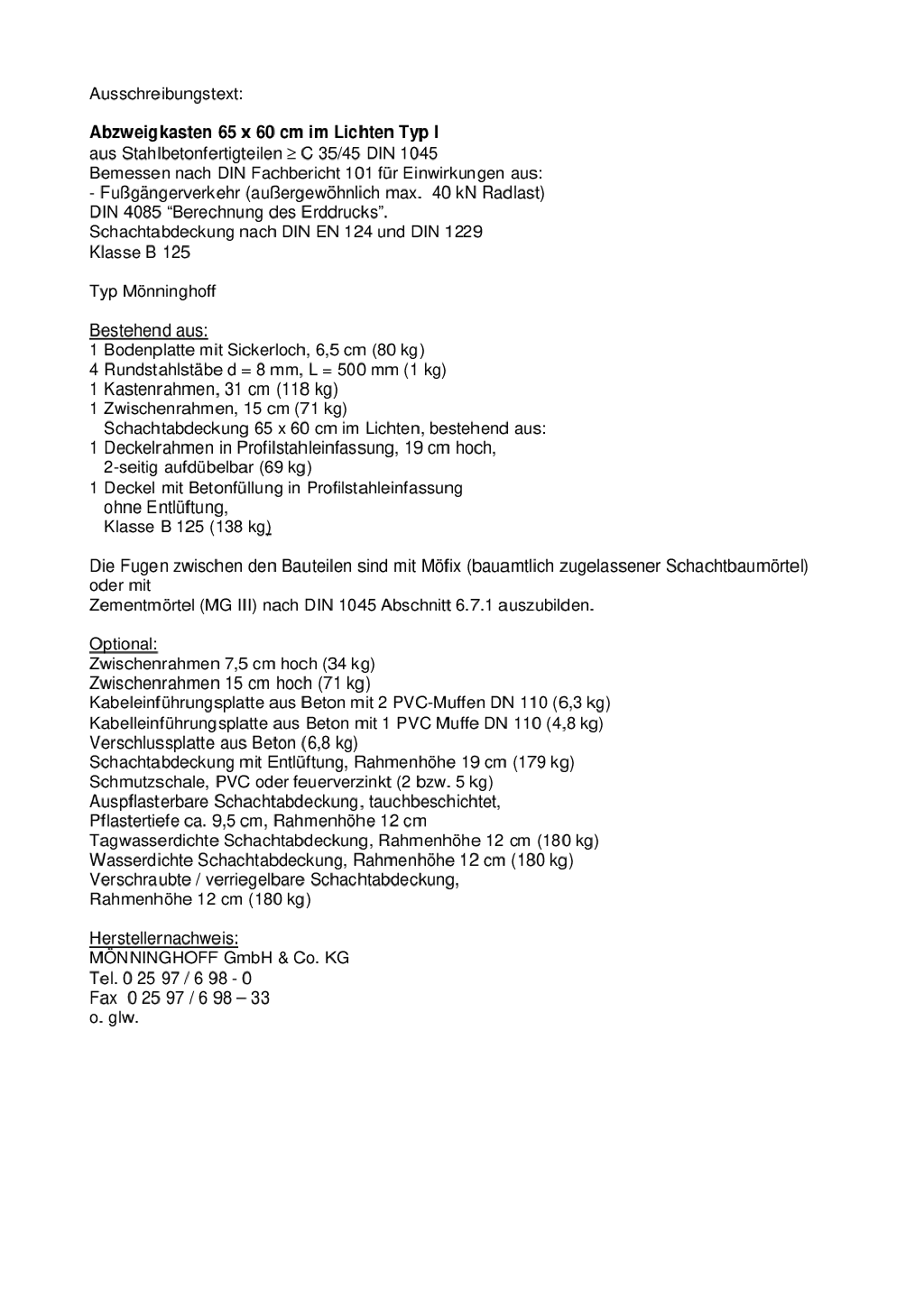 Nachfolgend erhalten Sie die technischen Daten, Ausschreibungstexte und sonstige Informationen als Download.