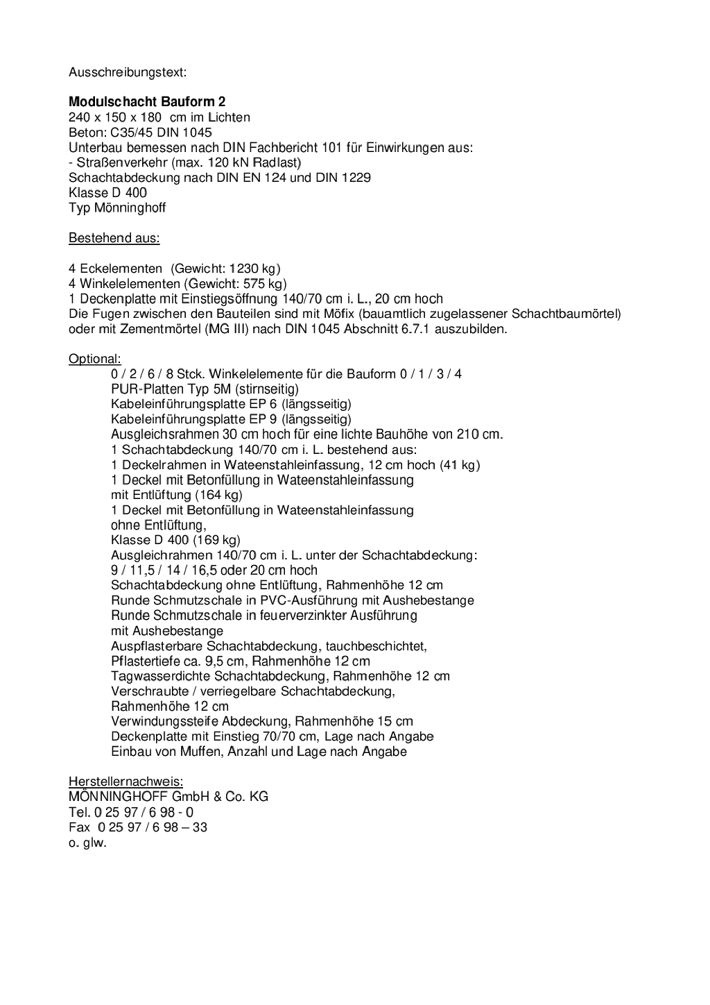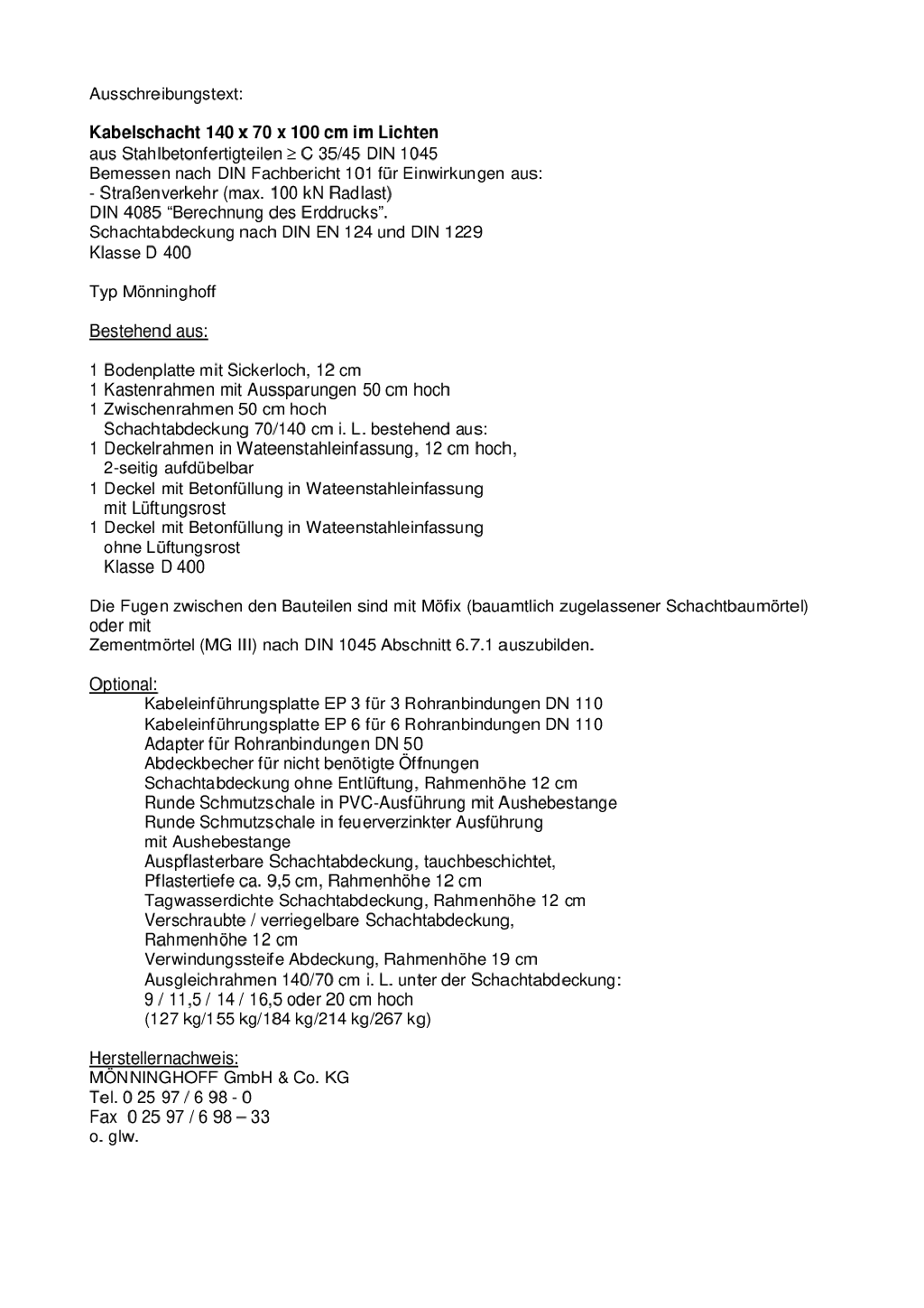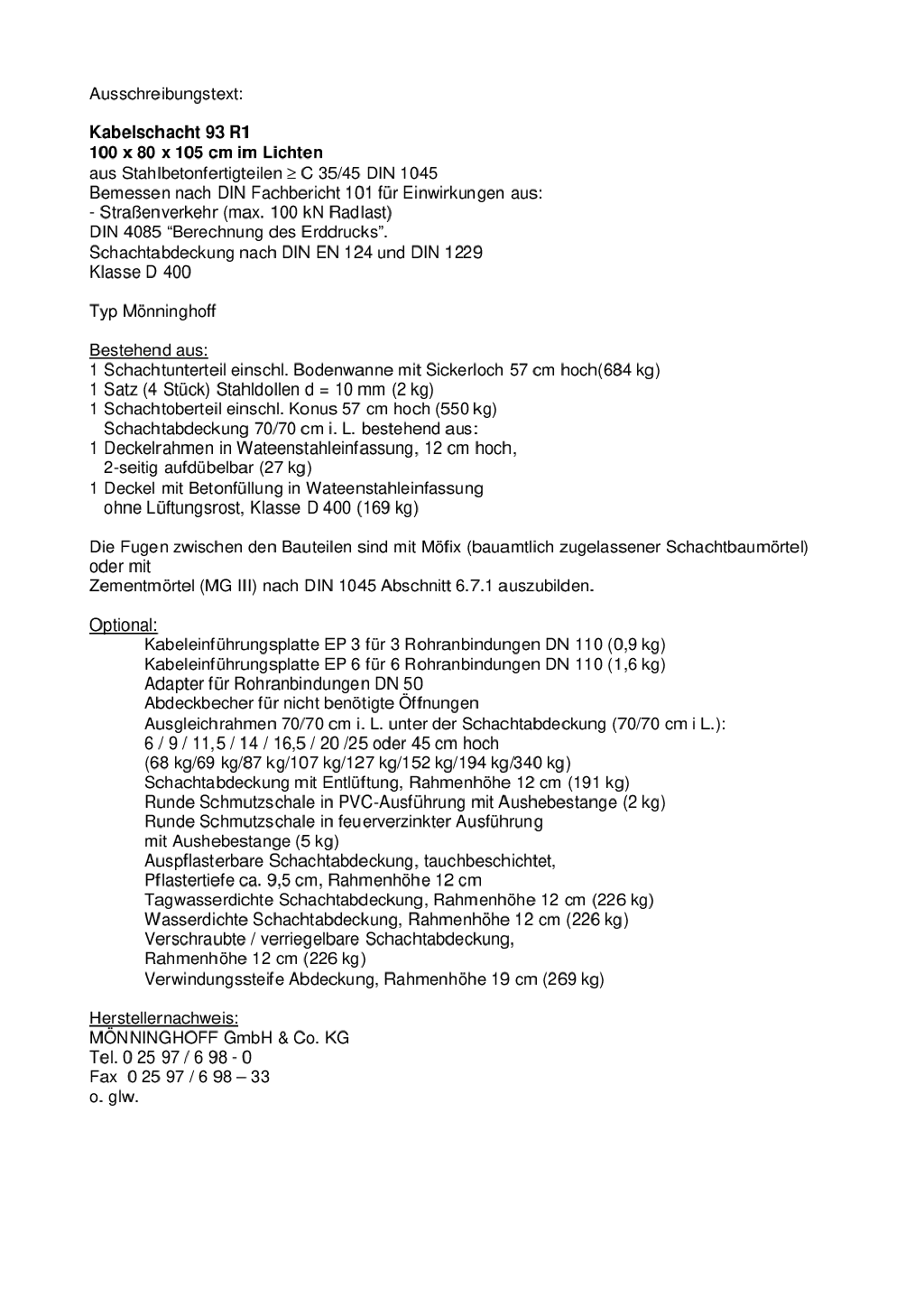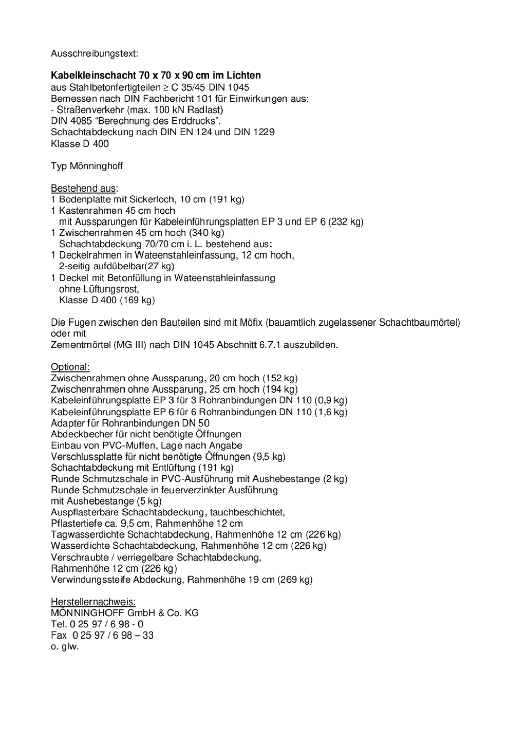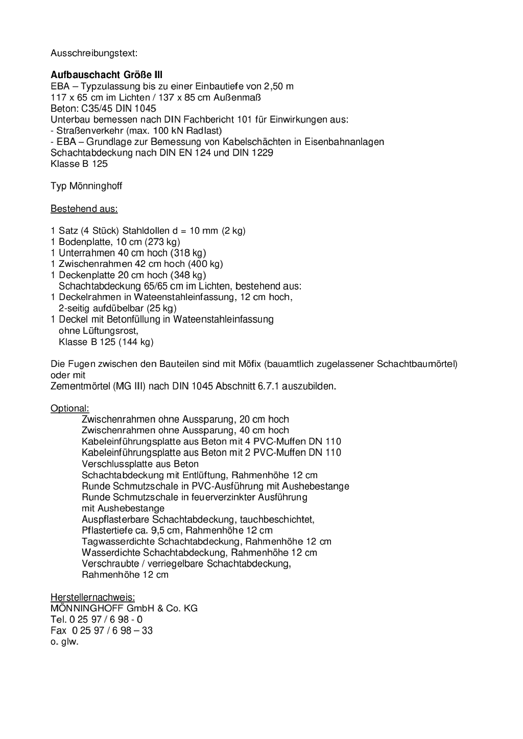Nachfolgend erhalten Sie die technischen Daten, Ausschreibungstexte und sonstige Informationen als Download.