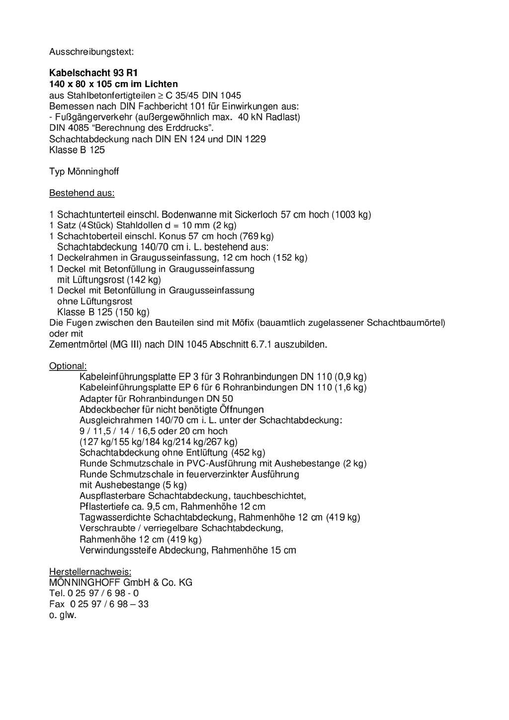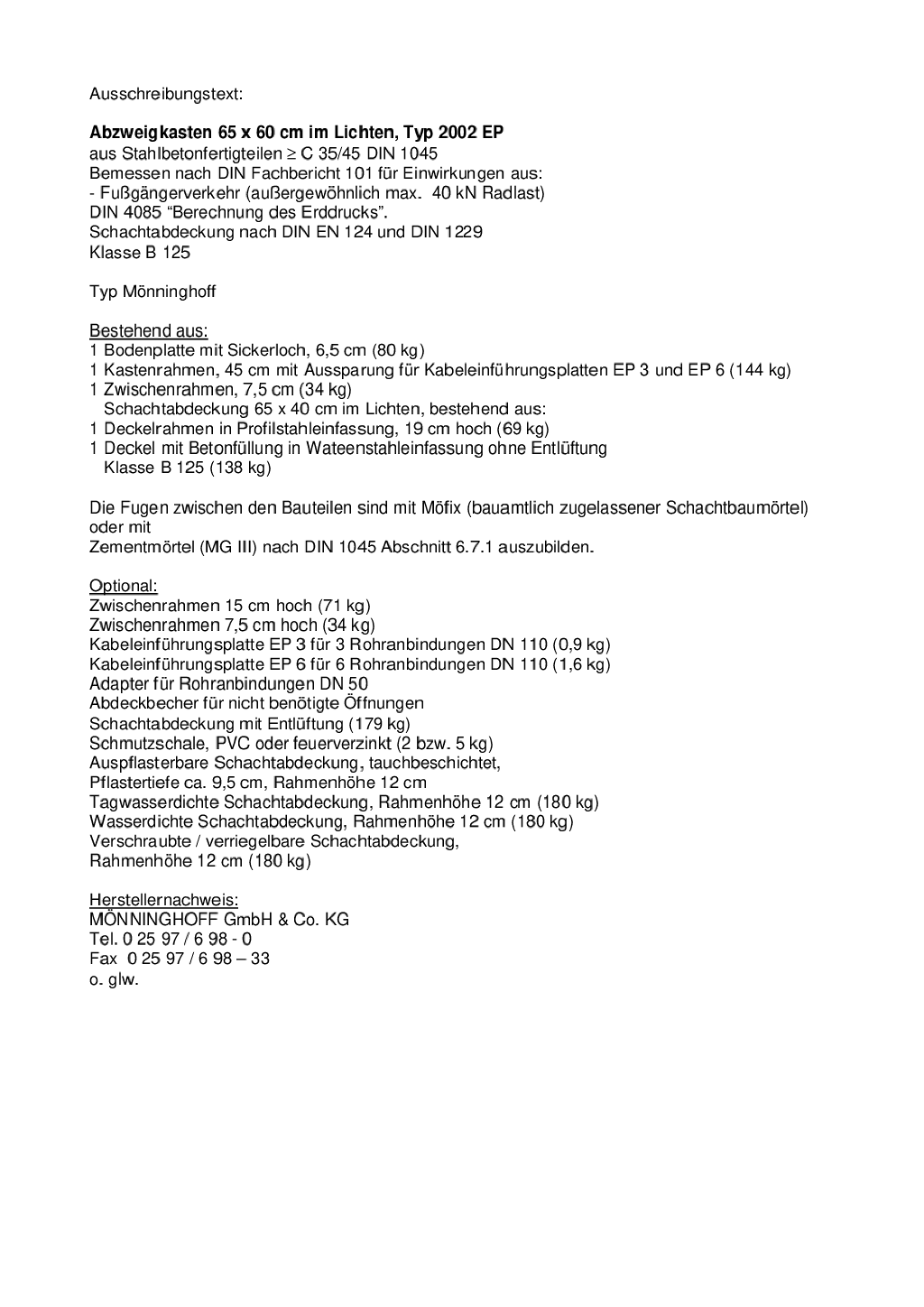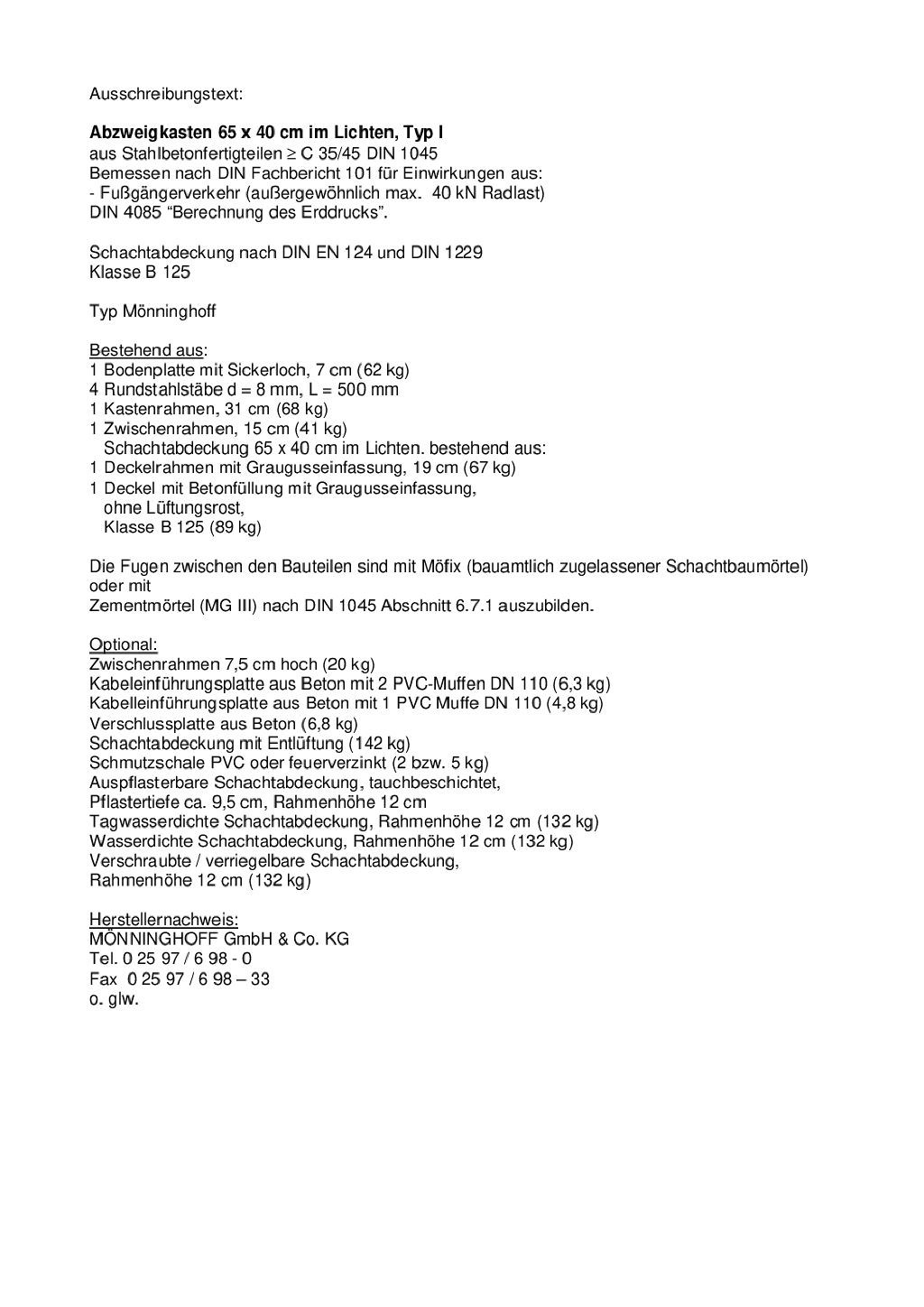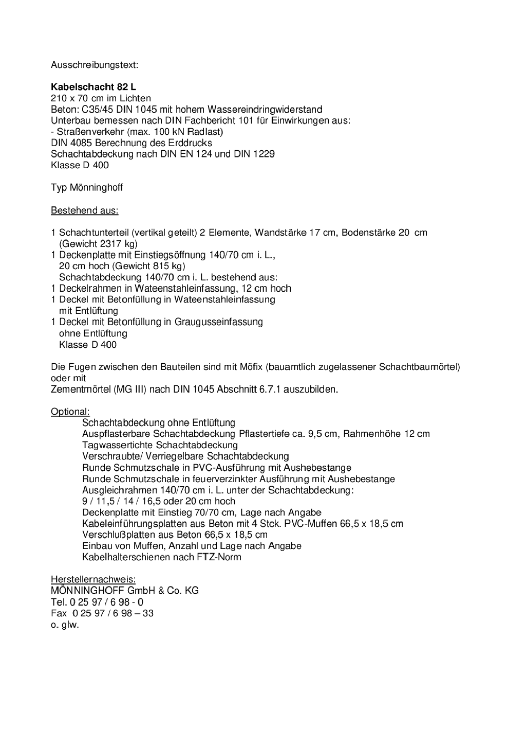 Nachfolgend erhalten Sie die technischen Daten, Ausschreibungstexte und sonstige Informationen als Download.
