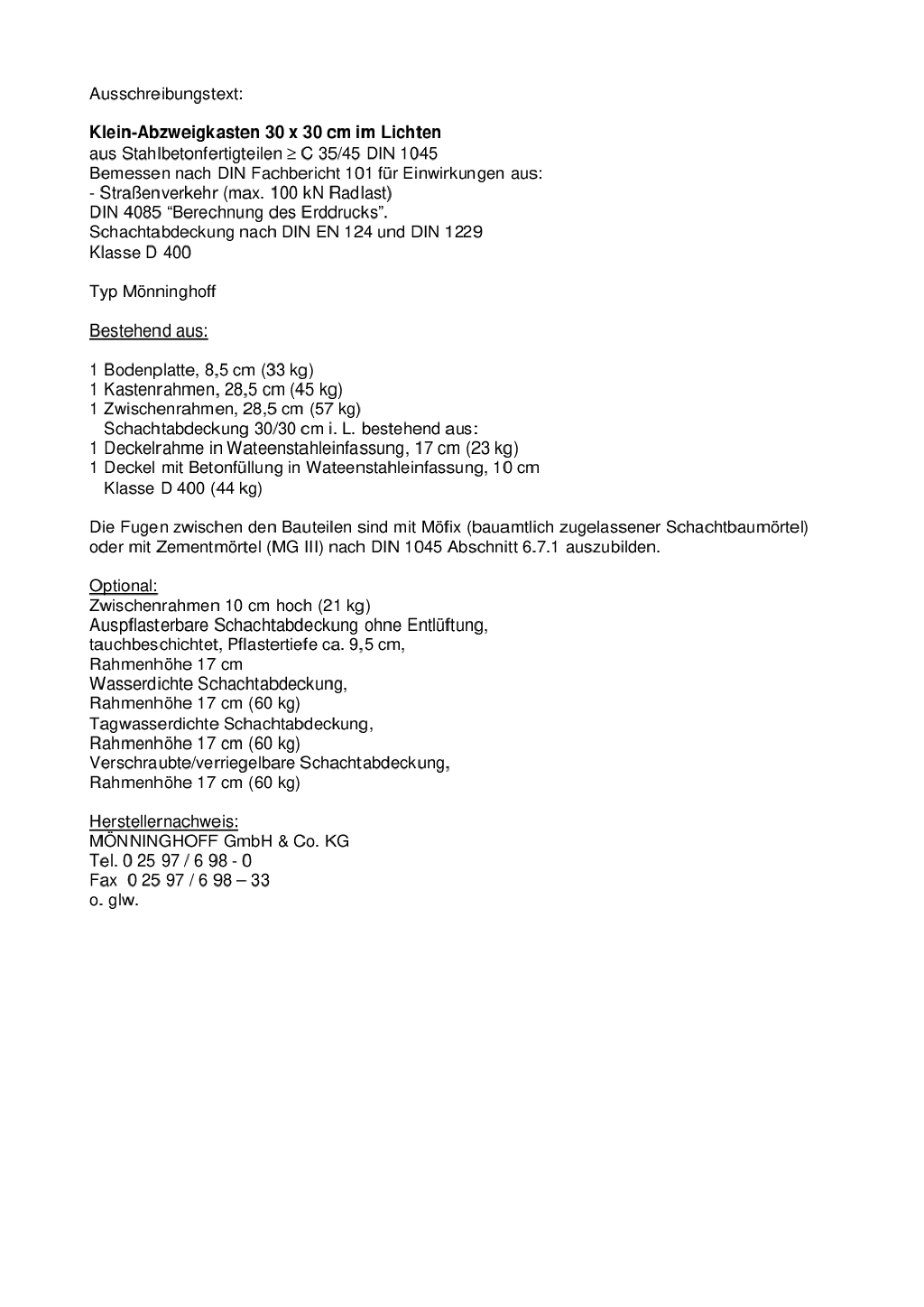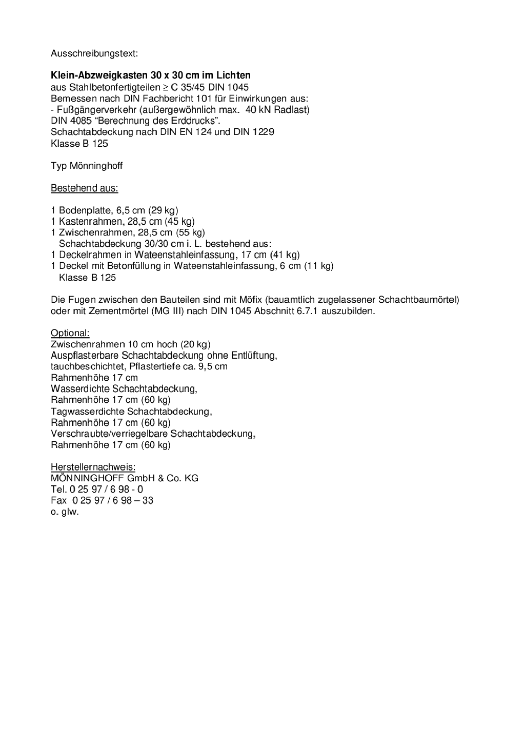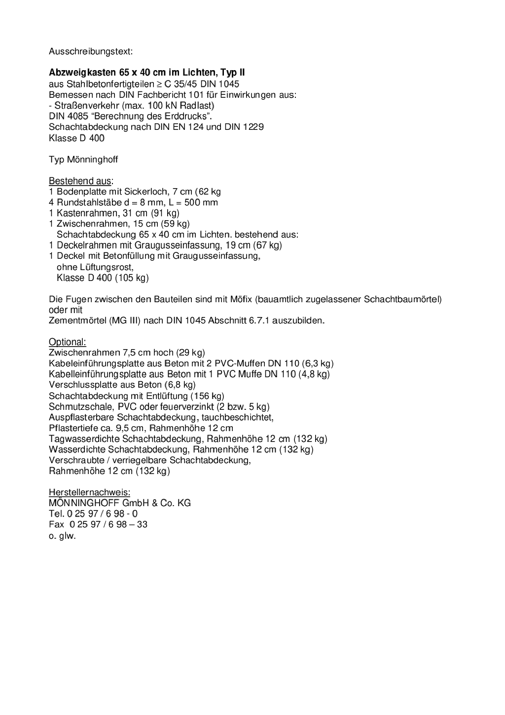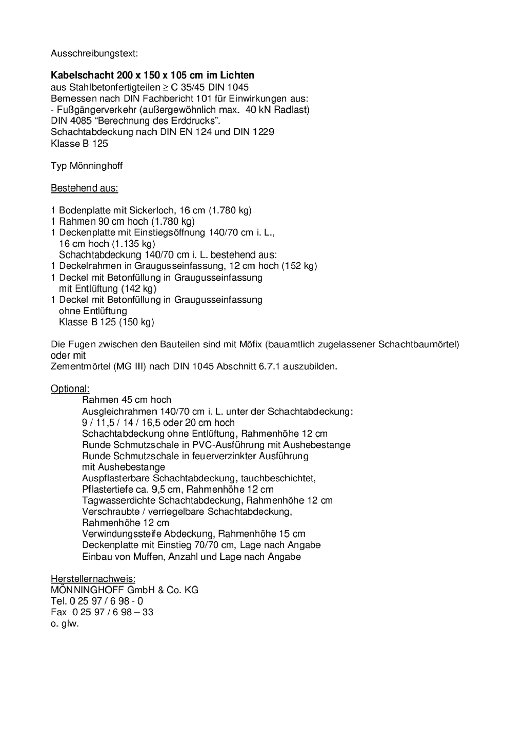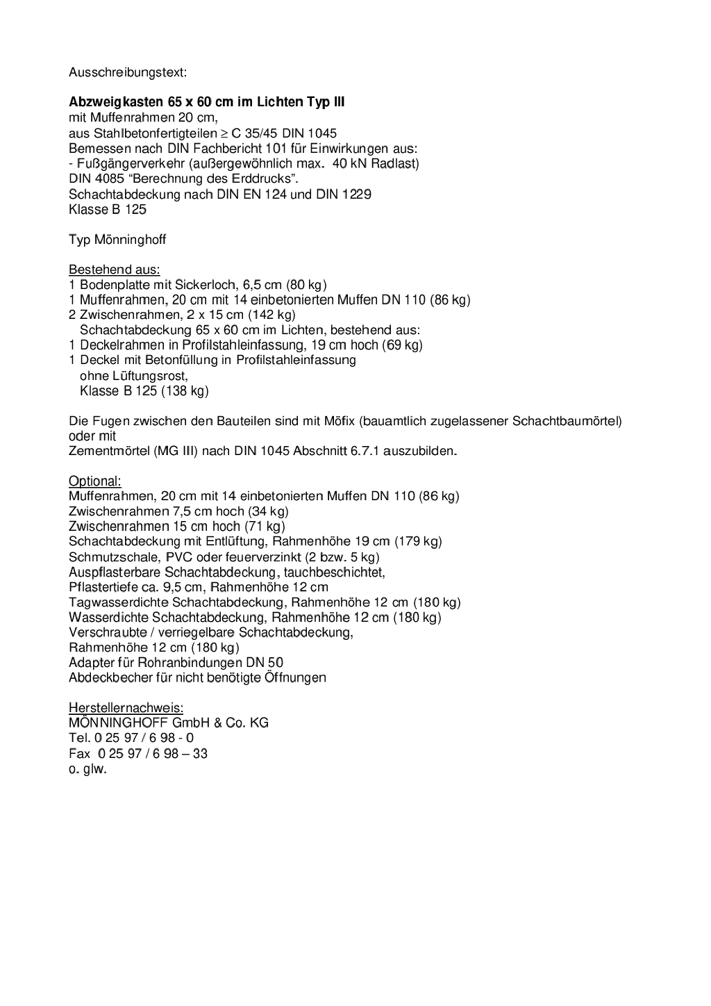 Nachfolgend erhalten Sie die technischen Daten, Ausschreibungstexte und sonstige Informationen als Download.