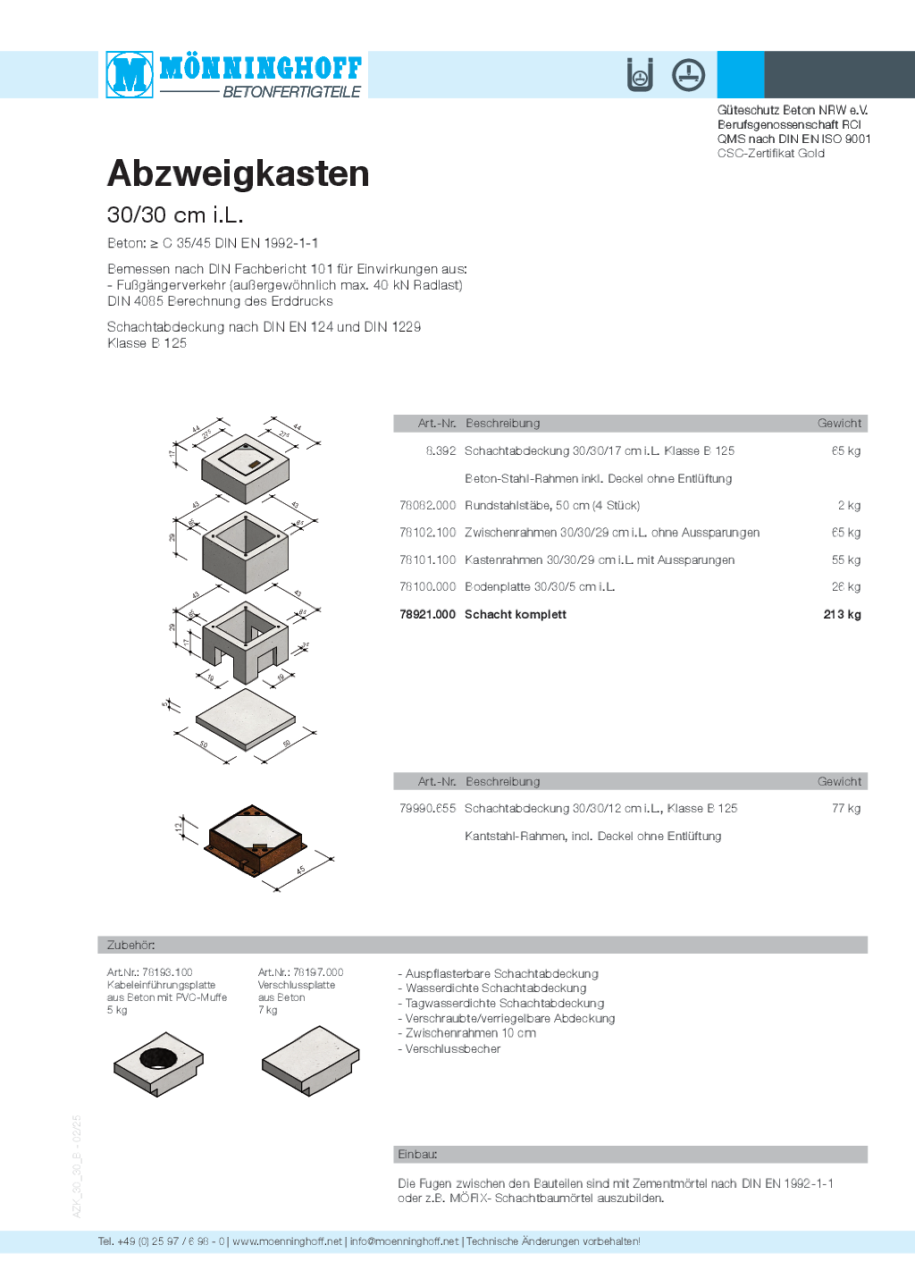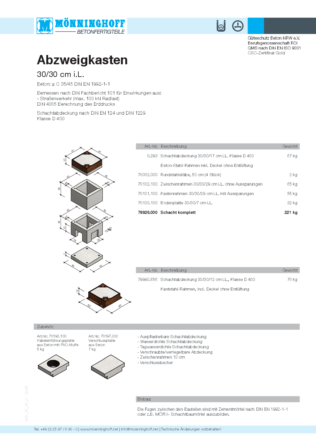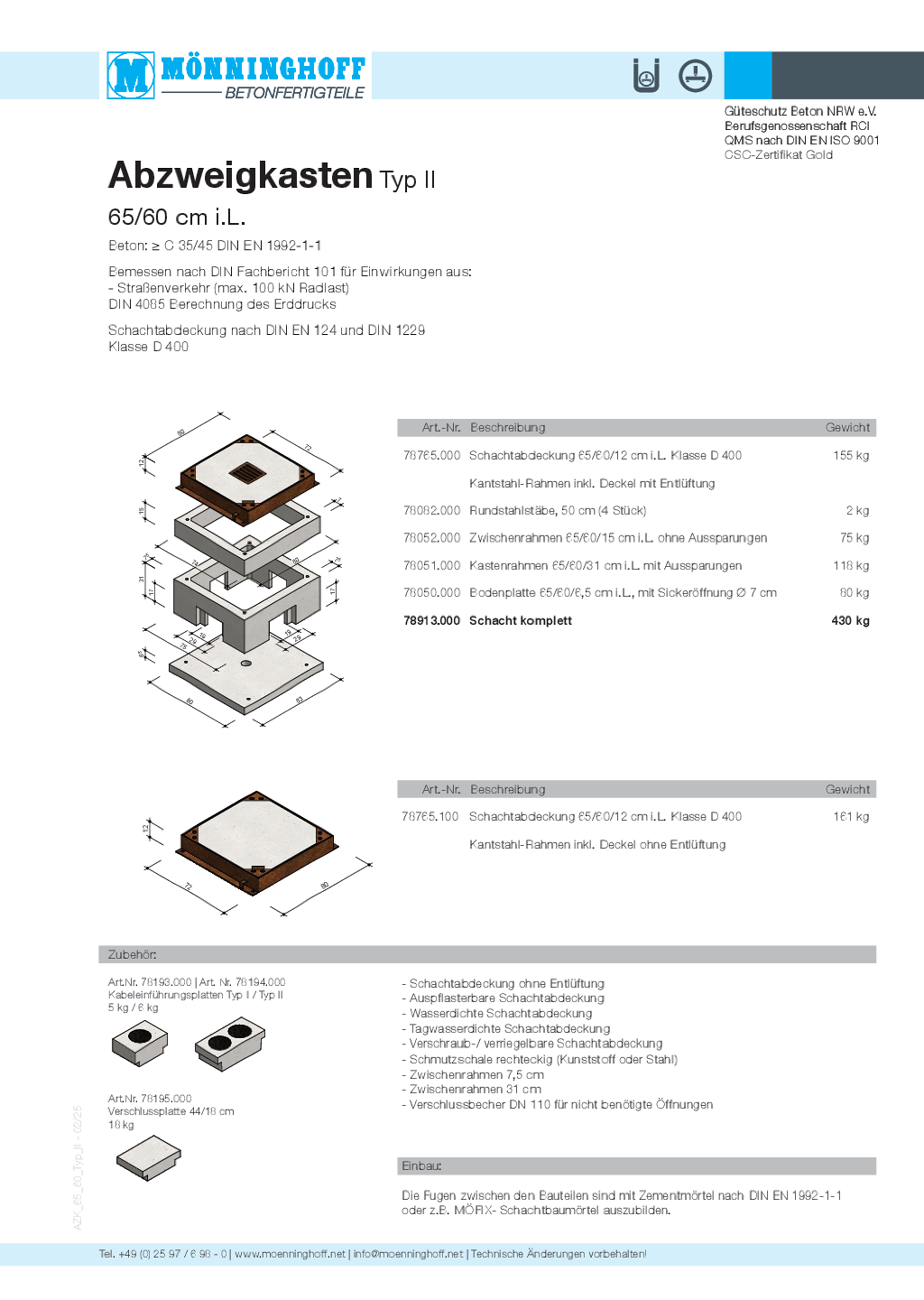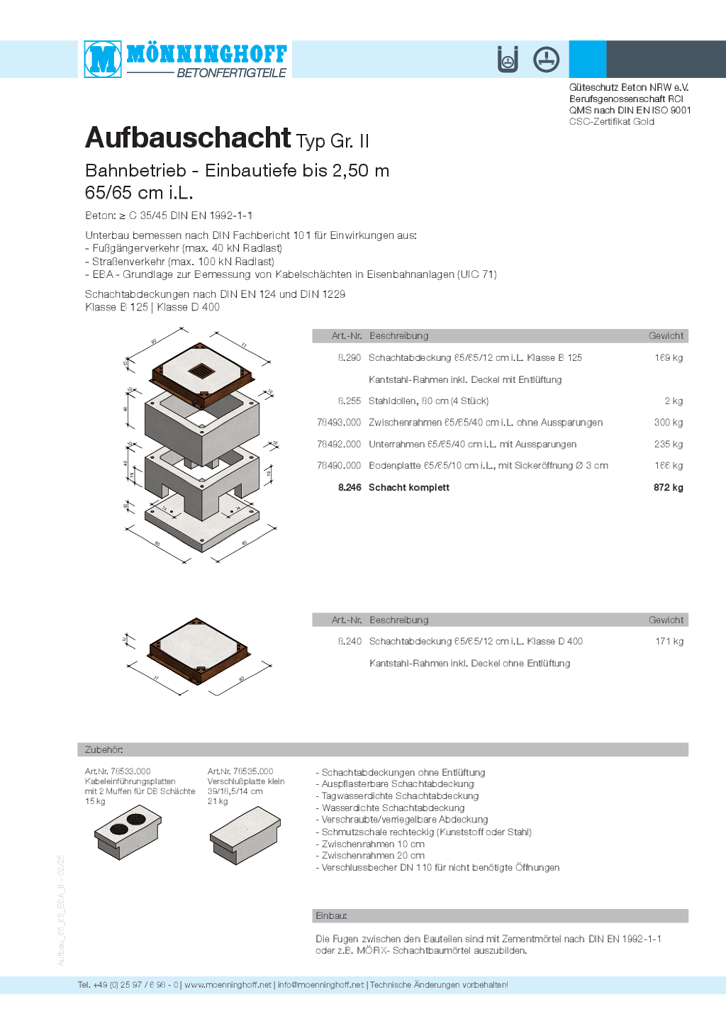 Mönninghoff bietet Ihnen eine reichhaltige Auswahl an Aufbauschächten für unterschiedlichste Anwendungsfälle: Abzweigkästen, Kabelschächte mit und ohne Muffen, Modulschächte...