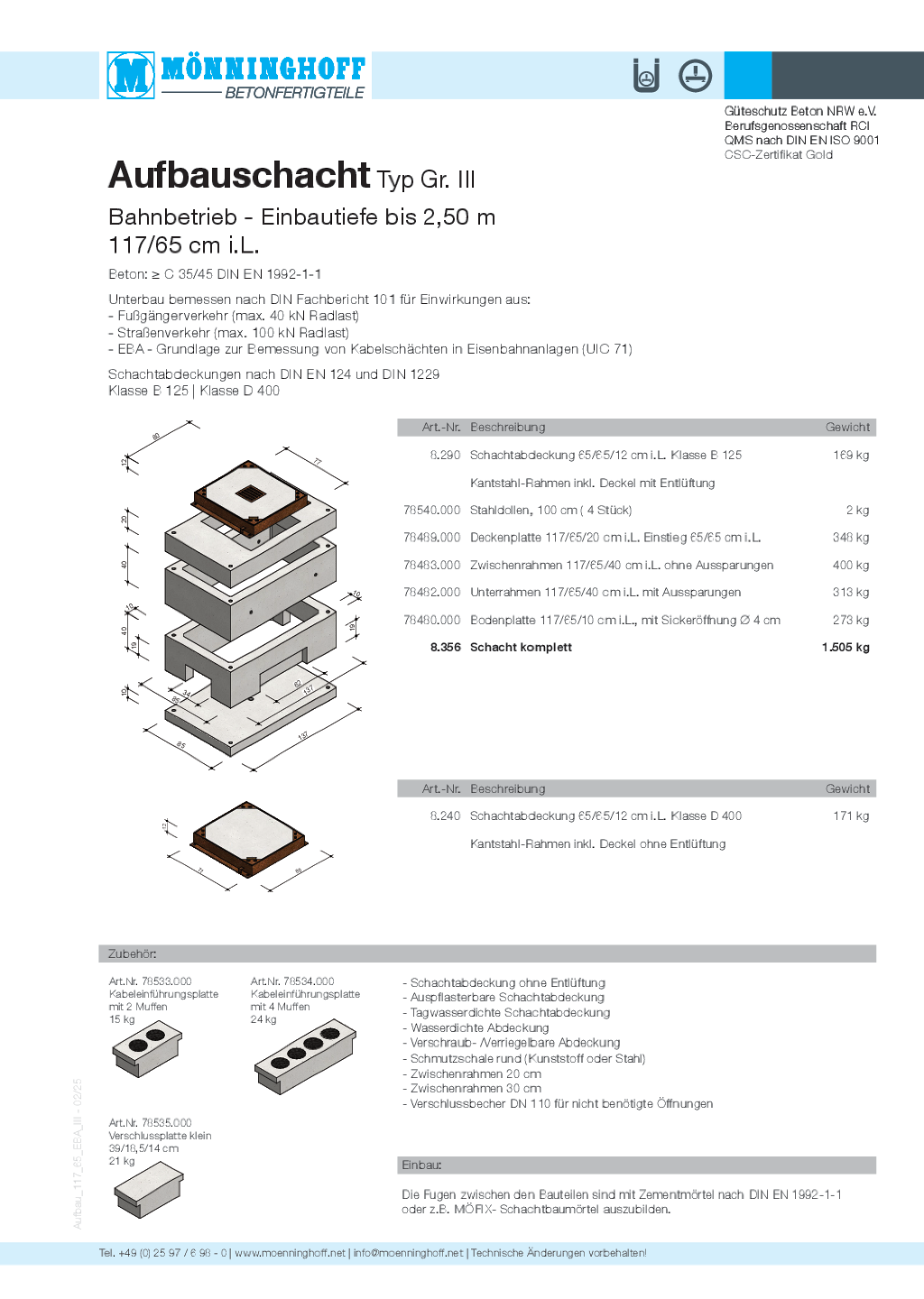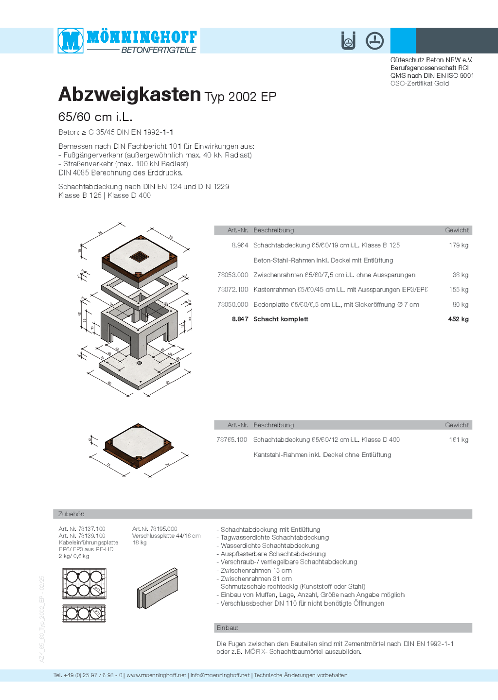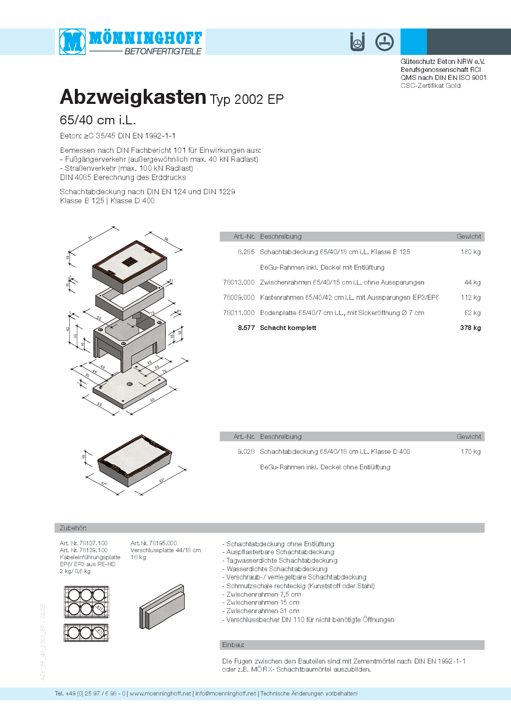 Mönninghoff bietet Ihnen eine reichhaltige Auswahl an Aufbauschächten für unterschiedlichste Anwendungsfälle: Abzweigkästen, Kabelschächte mit und ohne Muffen, Modulschächte...
