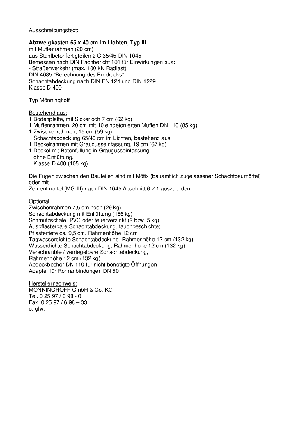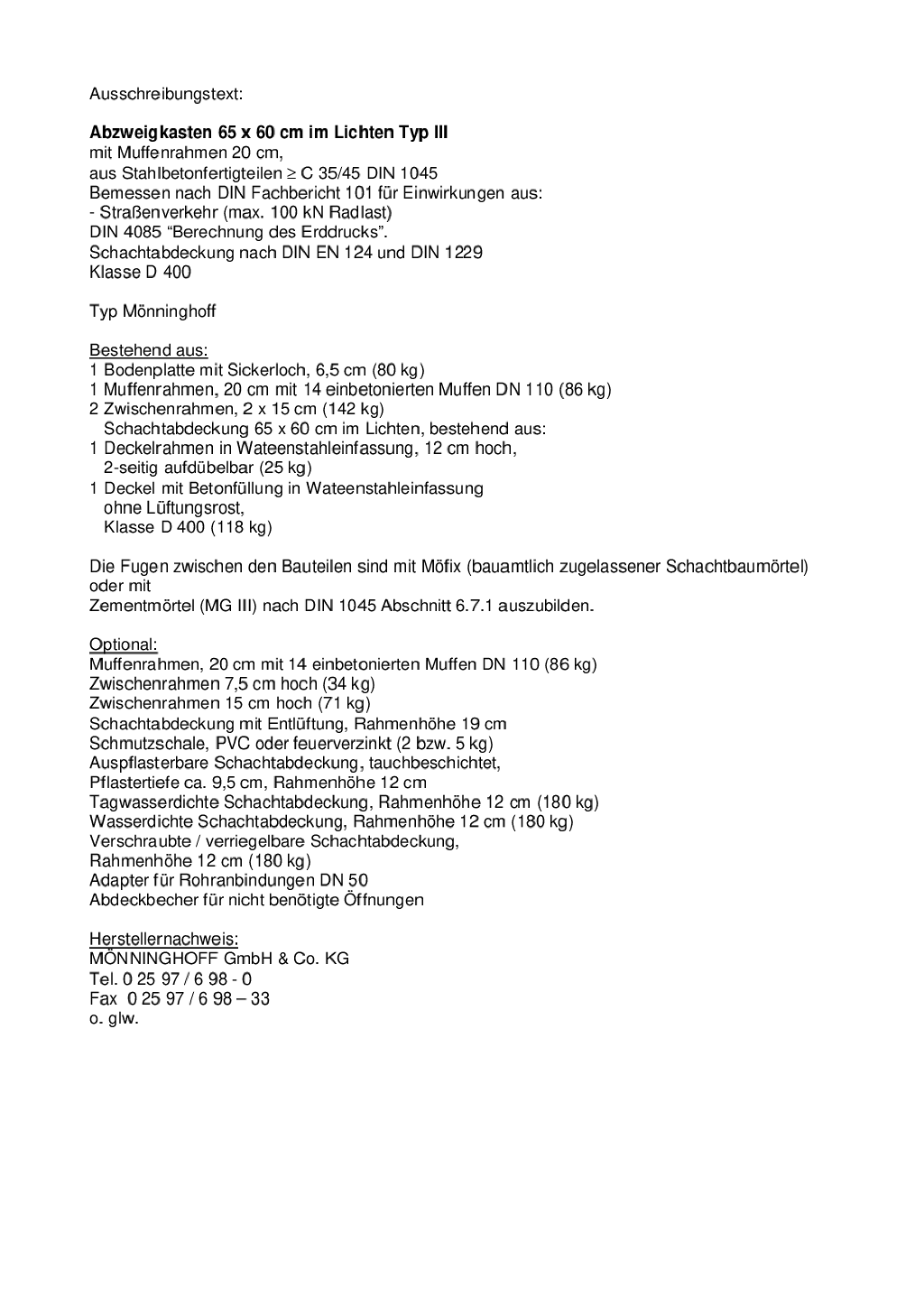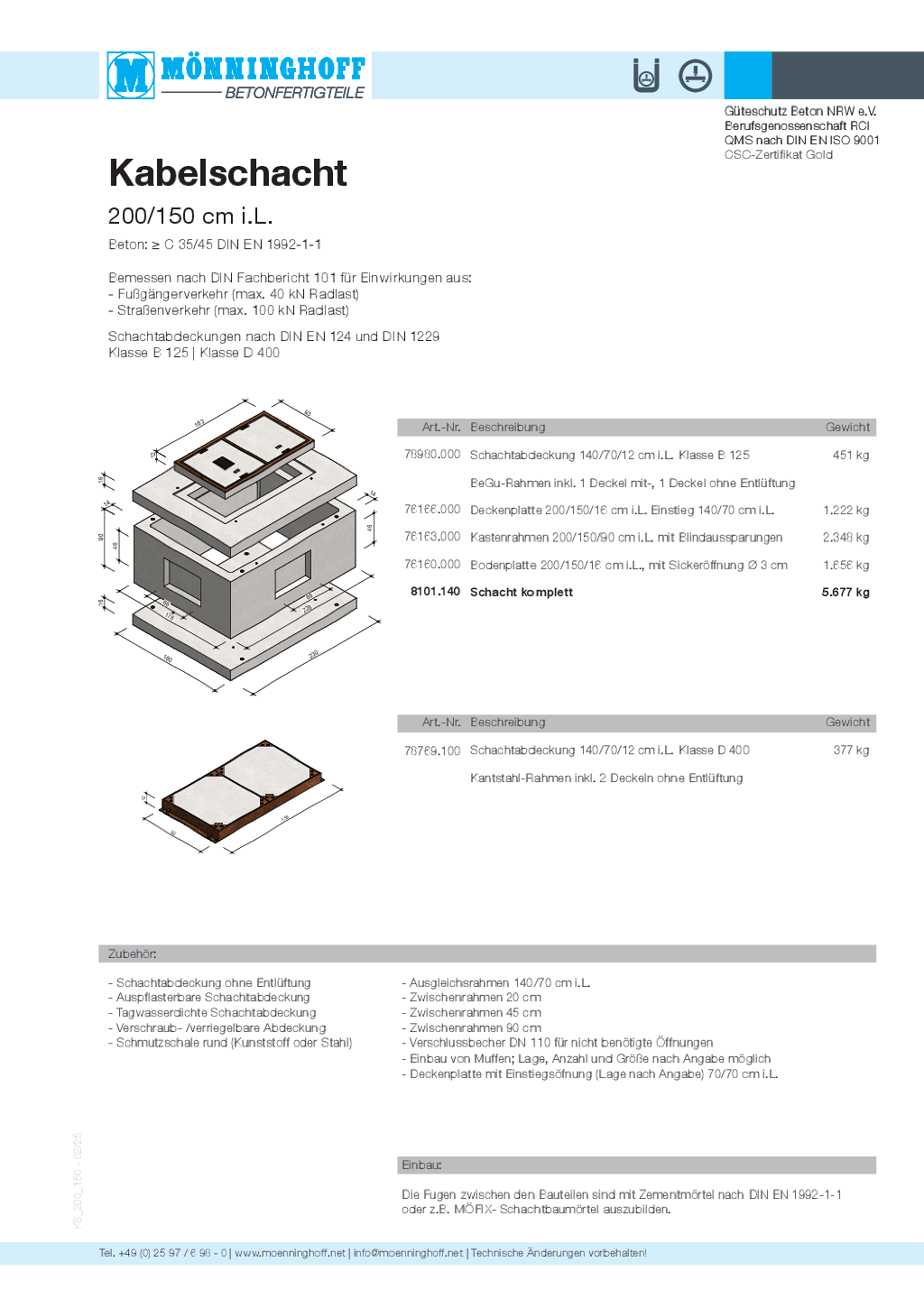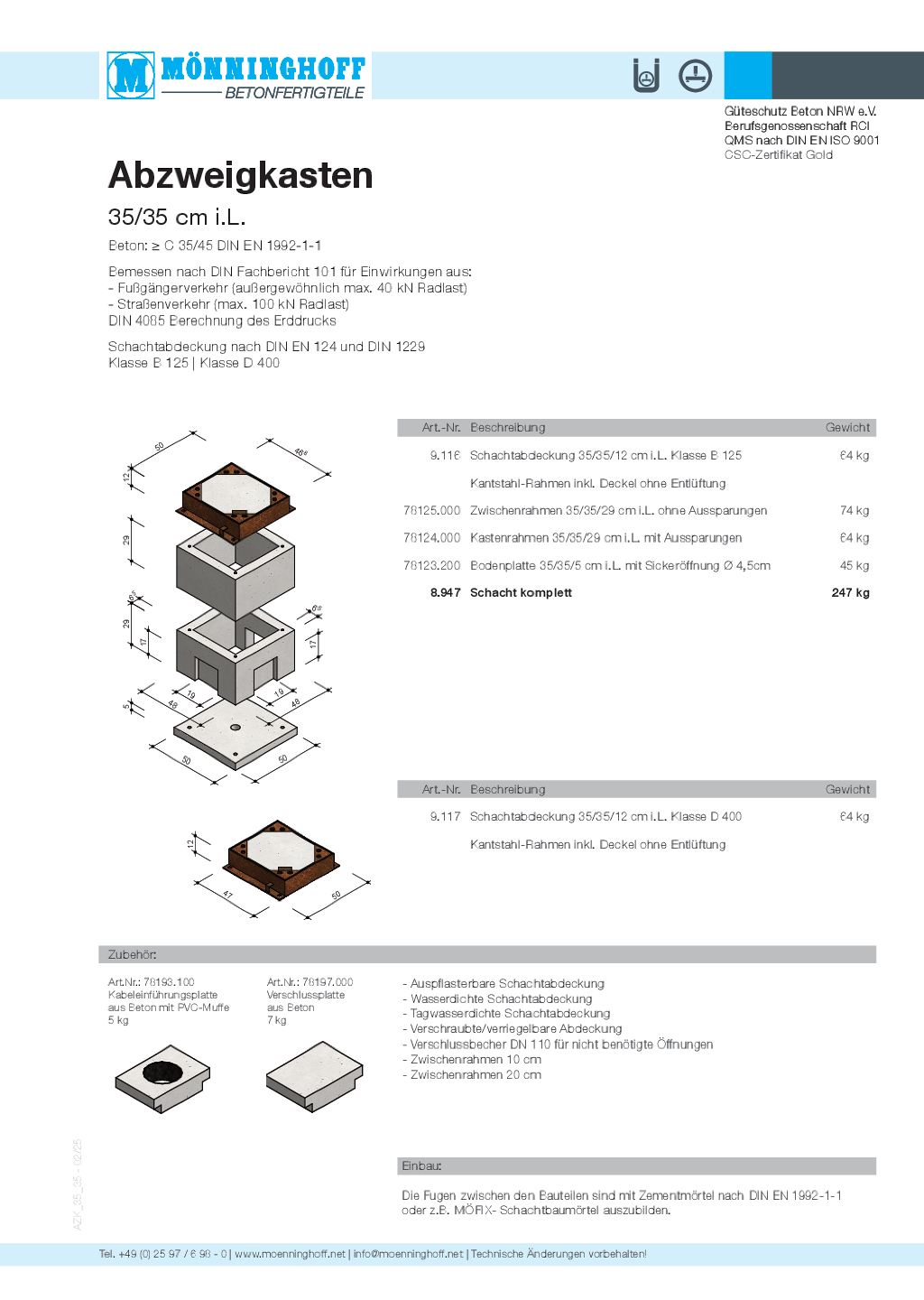 Mönninghoff bietet Ihnen eine reichhaltige Auswahl an Aufbauschächten für unterschiedlichste Anwendungsfälle: Abzweigkästen, Kabelschächte mit und ohne Muffen, Modulschächte...