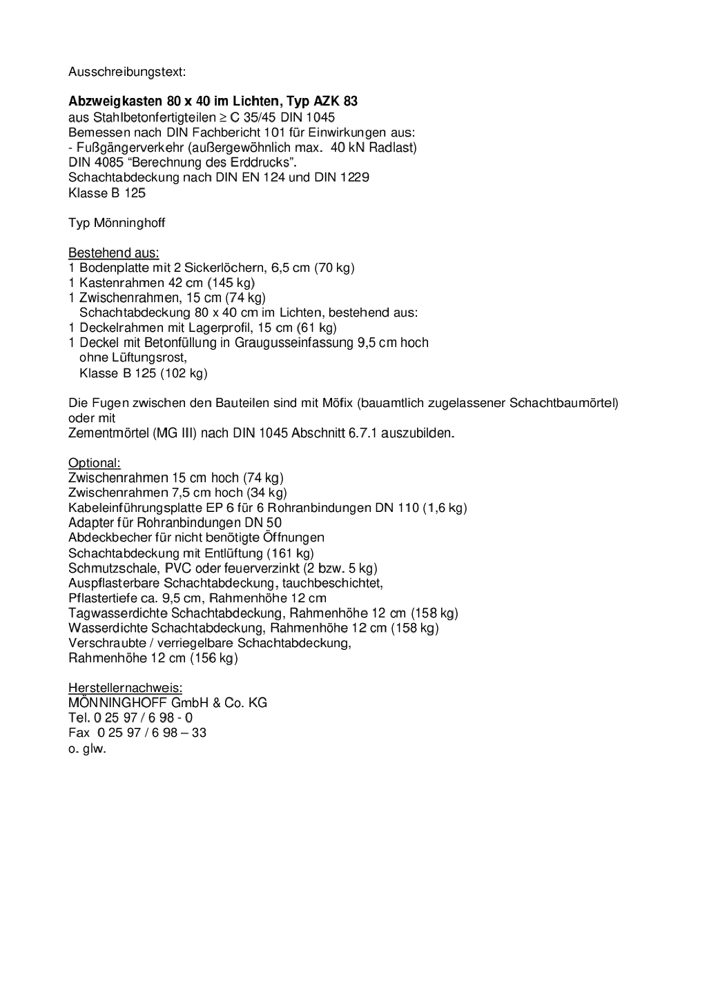 80 / 40 cm i.L. , Klasse B 125, D 400