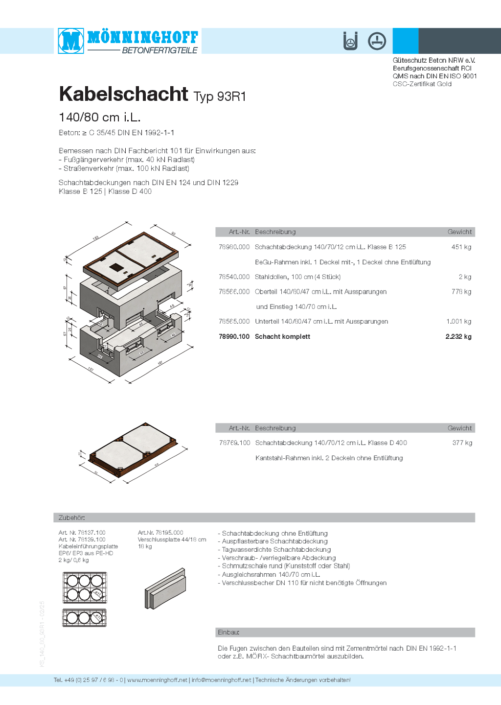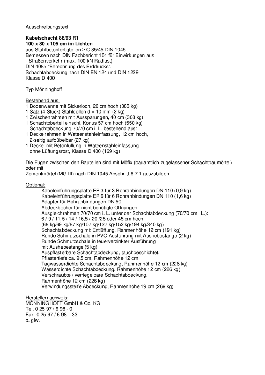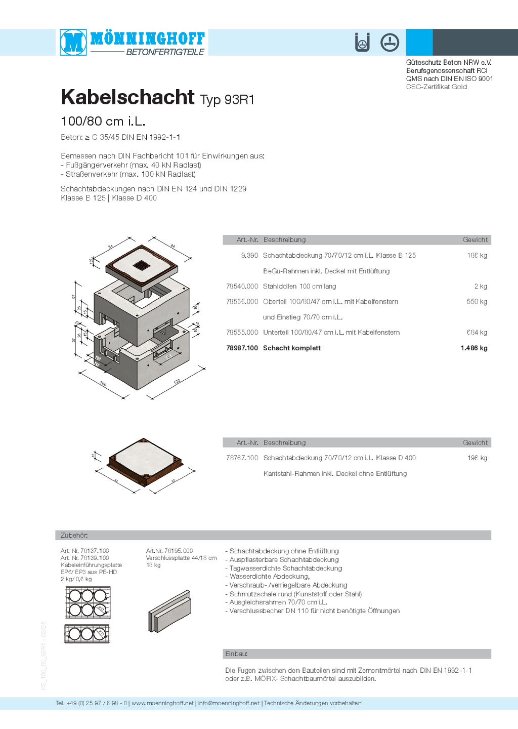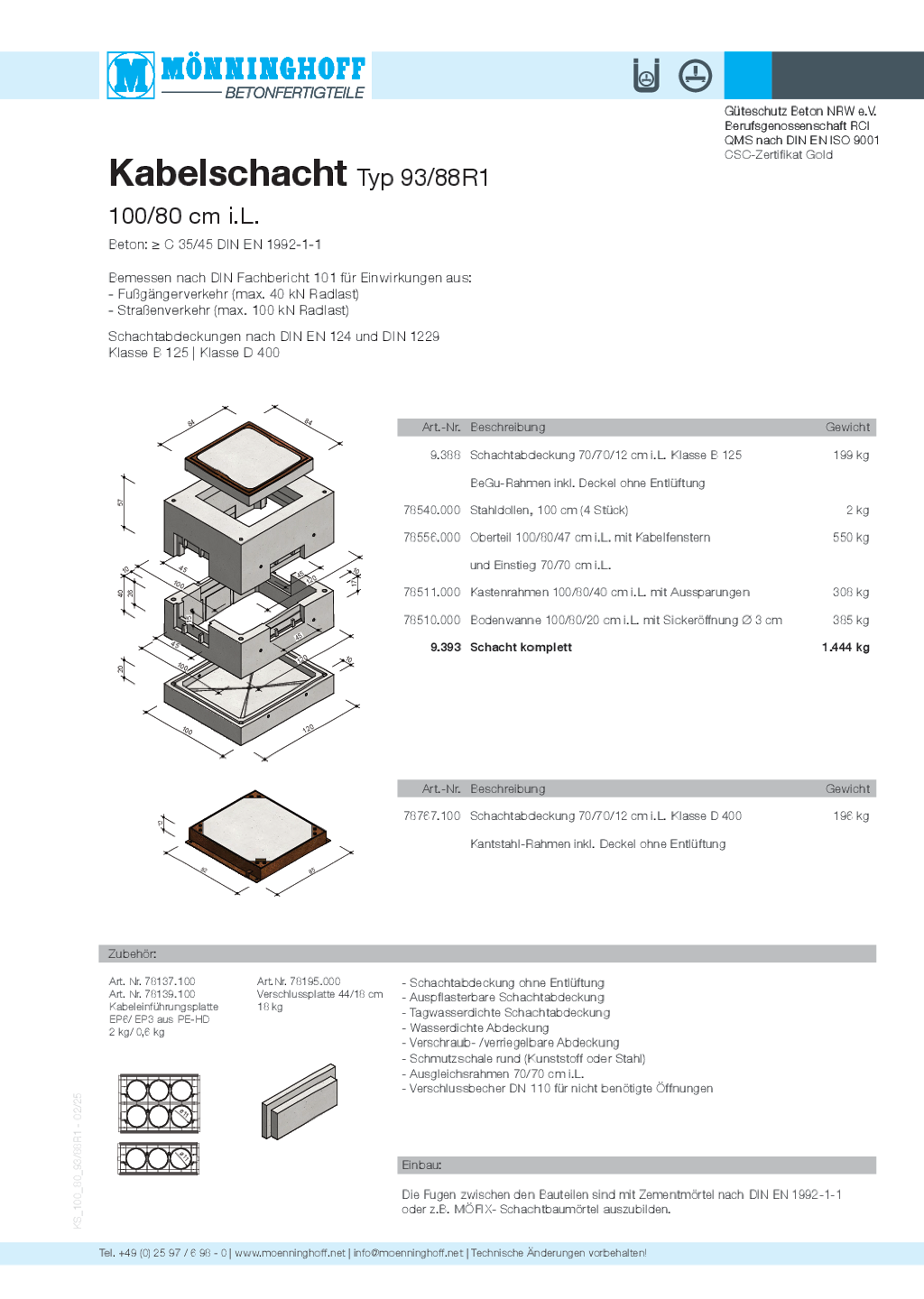 - KS 93 / 88 R1 , 100 / 80 / 105 cm i.L. , Klasse D 400