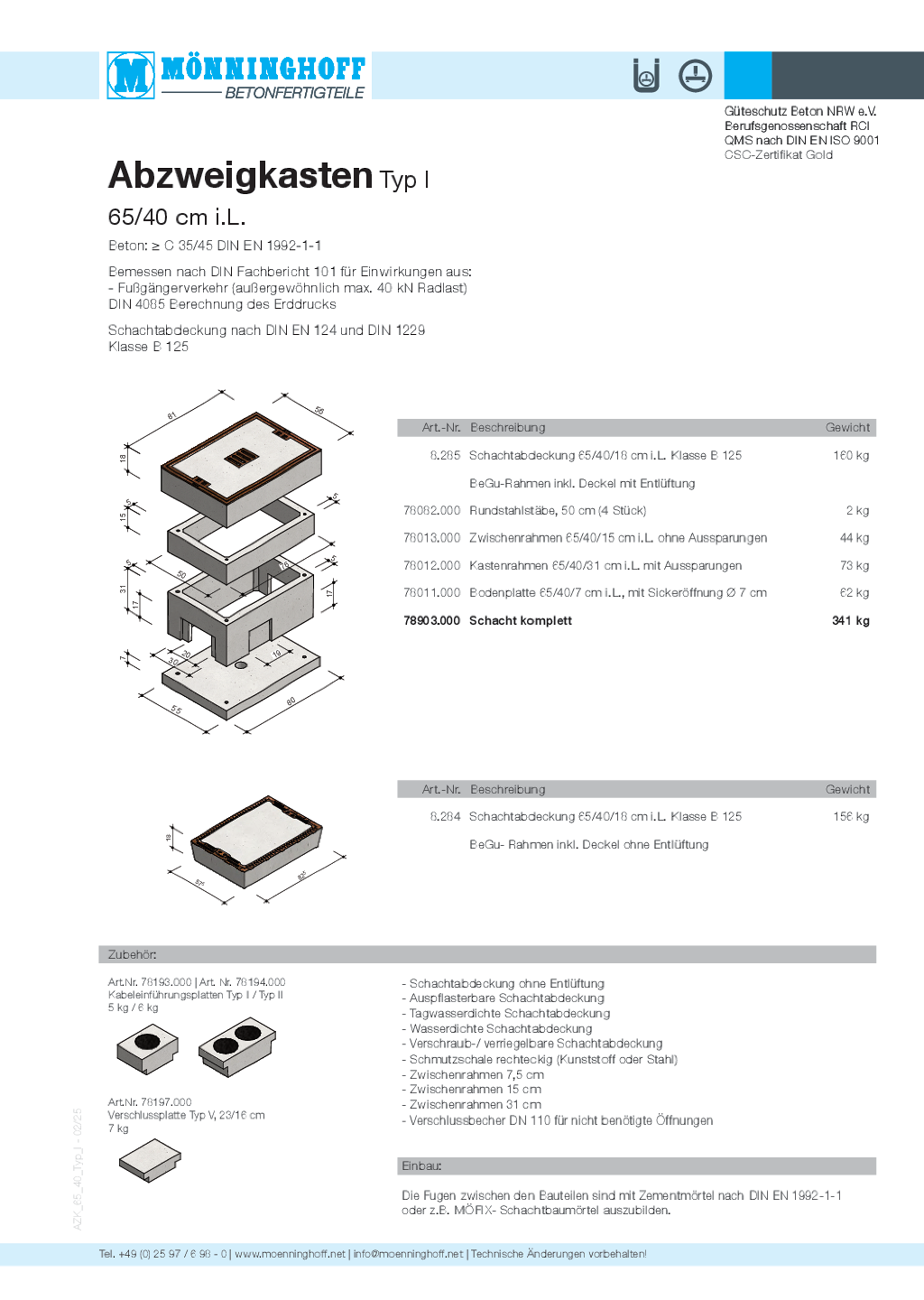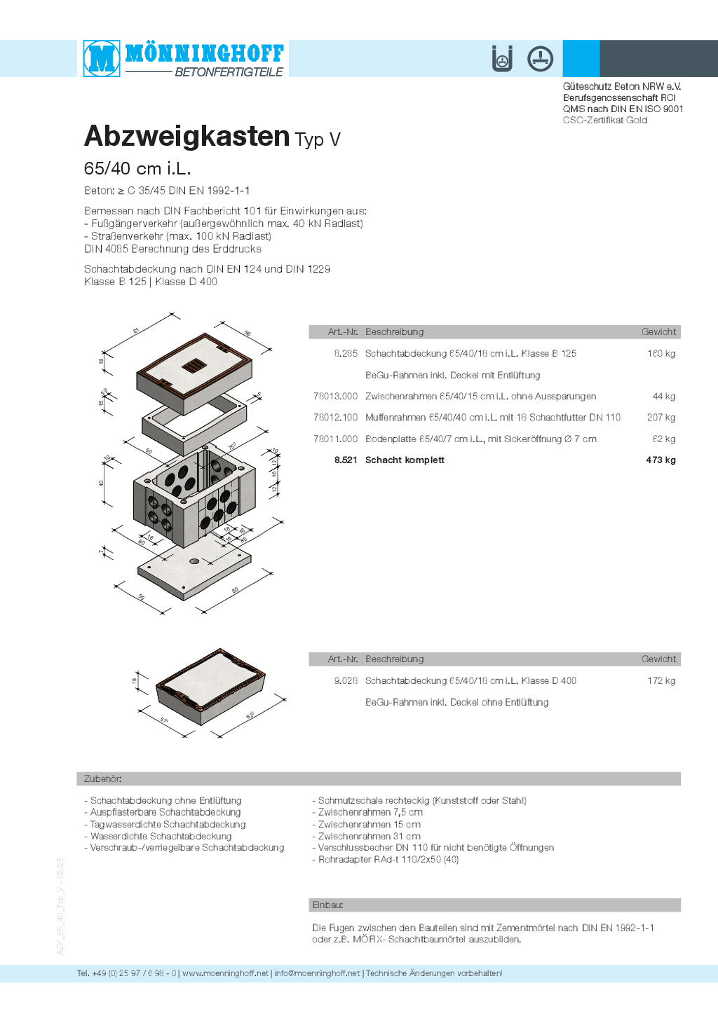 65 / 40 cm i.L. , Klasse B 125, D 400