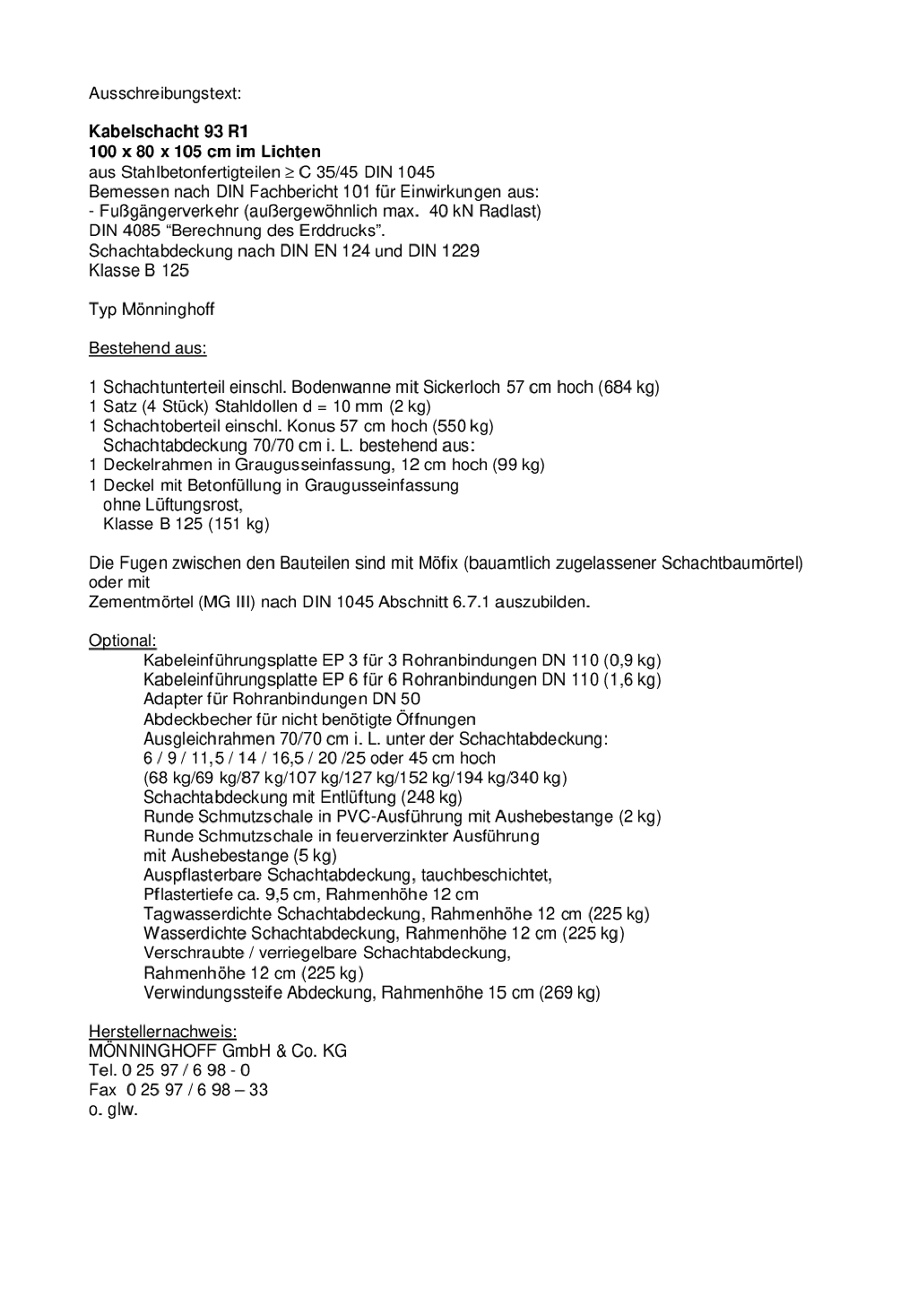- KS 93 / 88 R1 , 100 / 80 / 105 cm i.L. , Klasse B 125