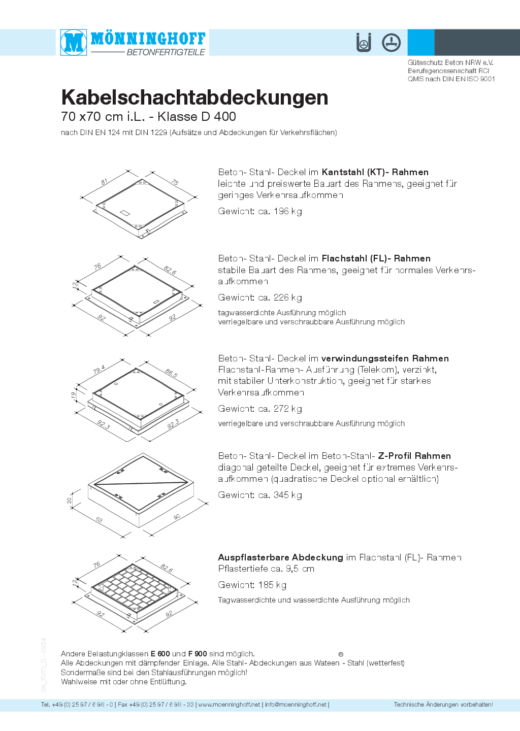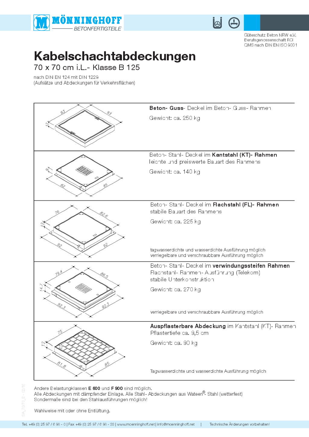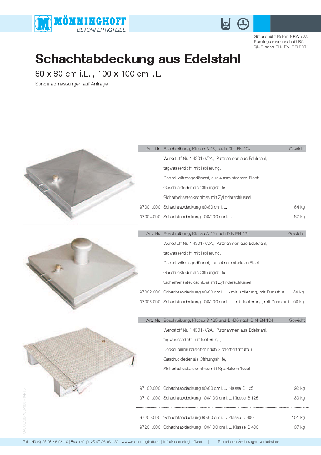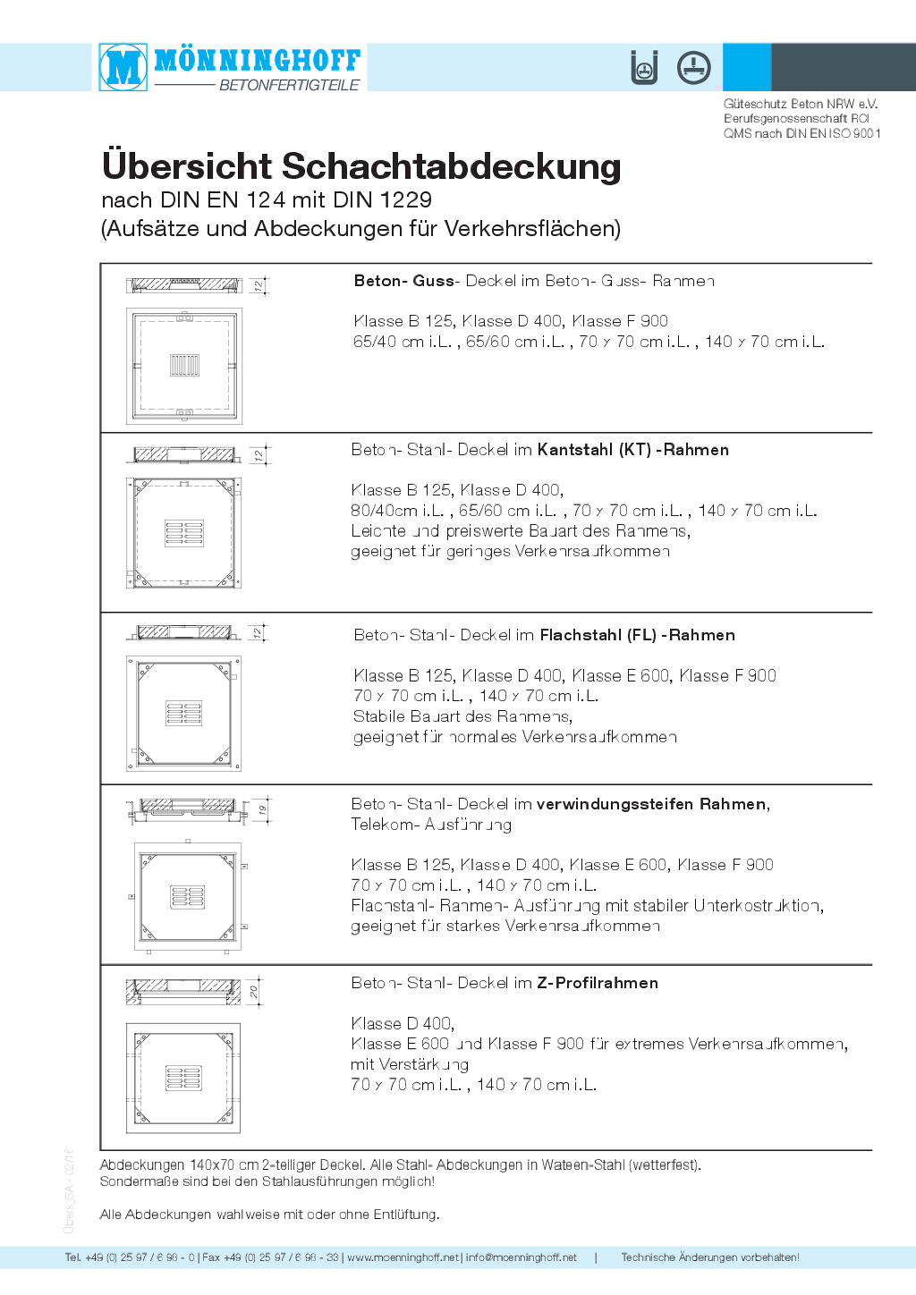 Lieferprogramm Mönninghoff-Schachtabdeckungen
