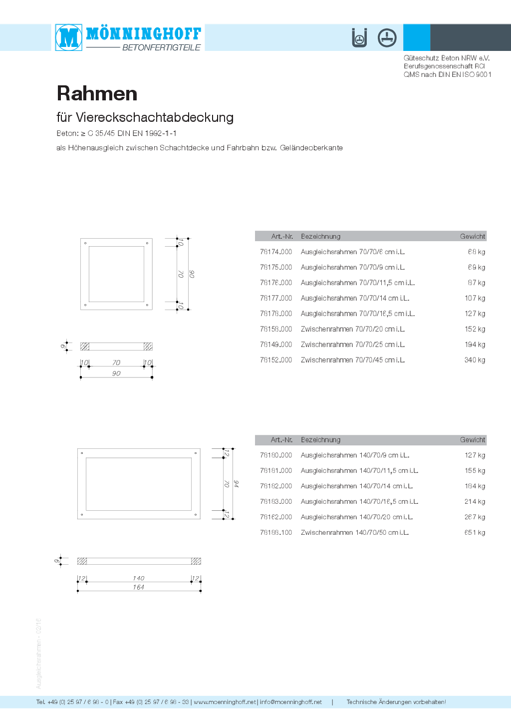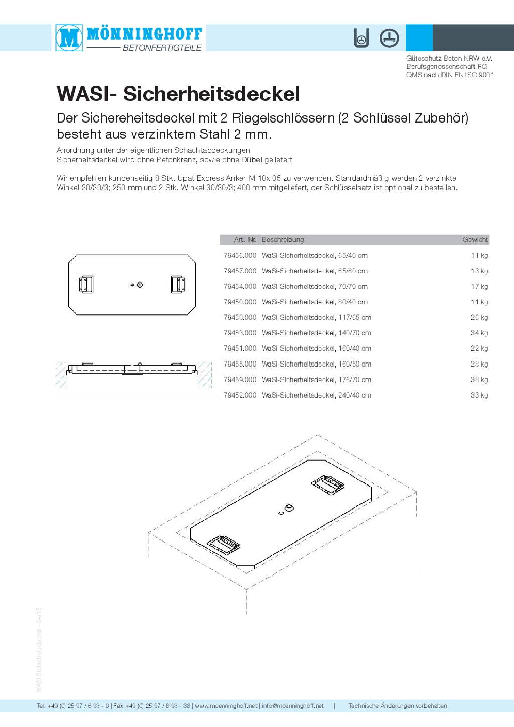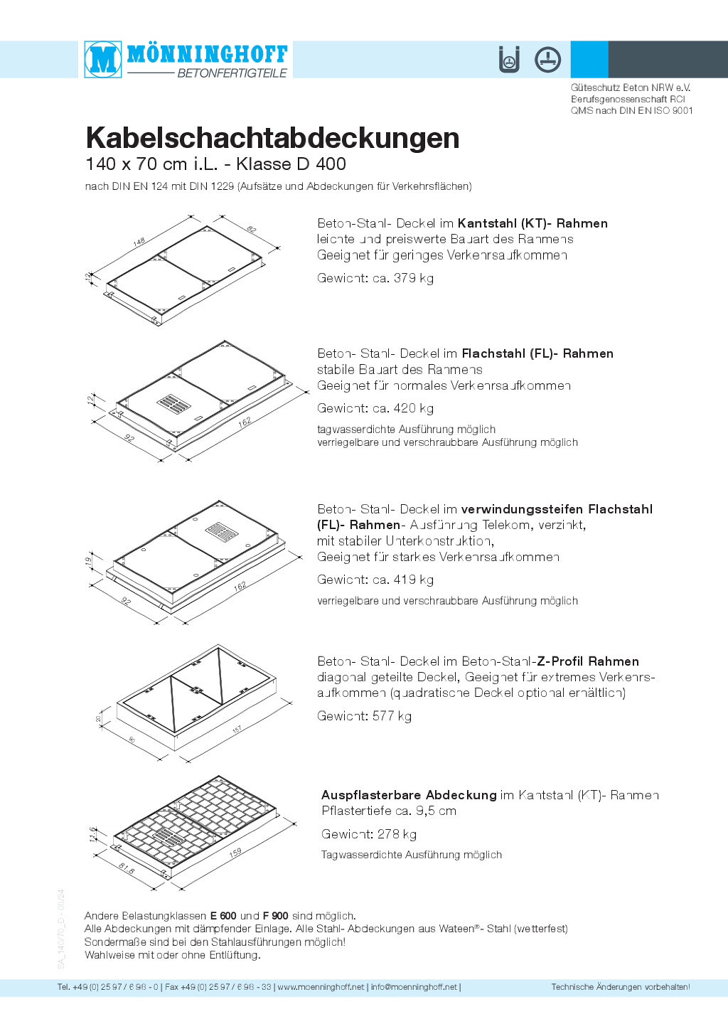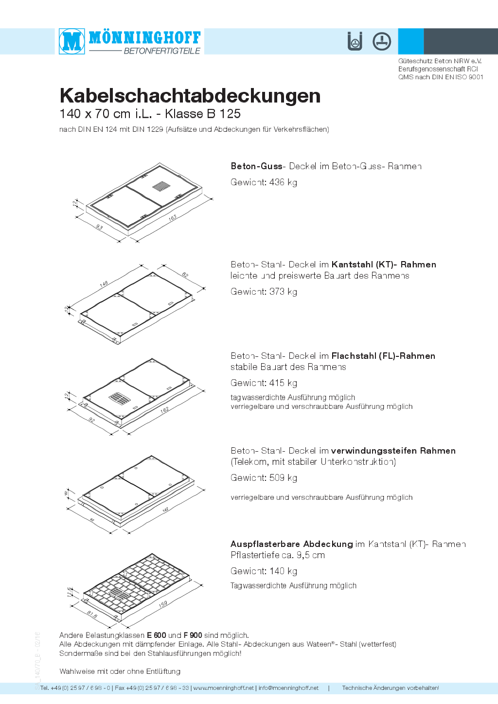 Lieferprogramm Mönninghoff-Schachtabdeckungen