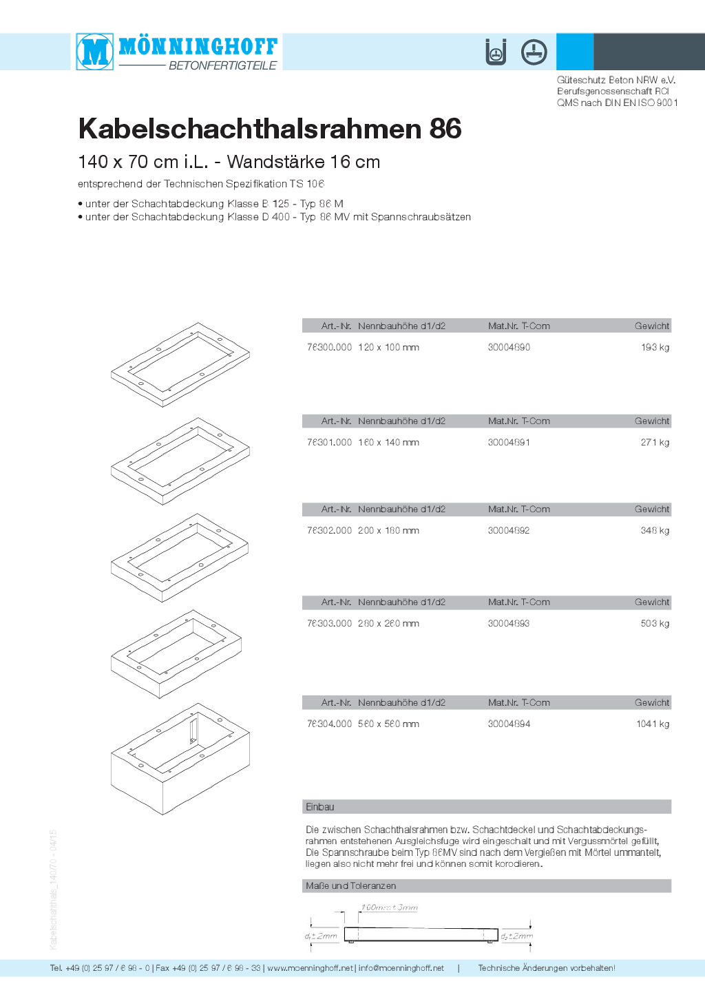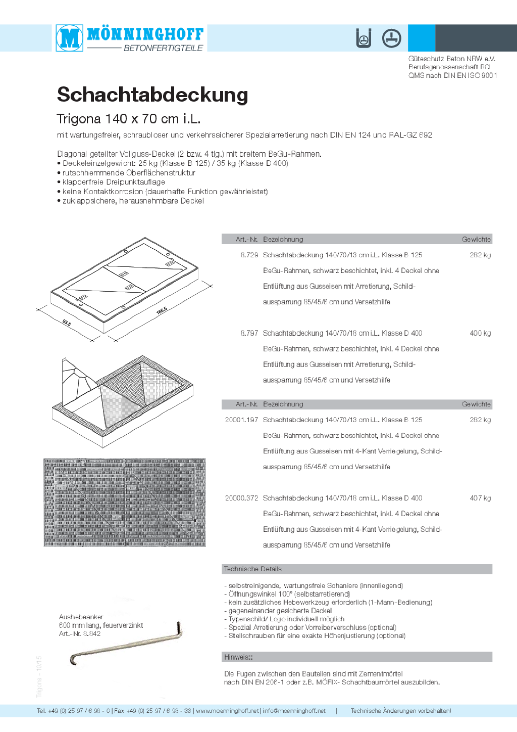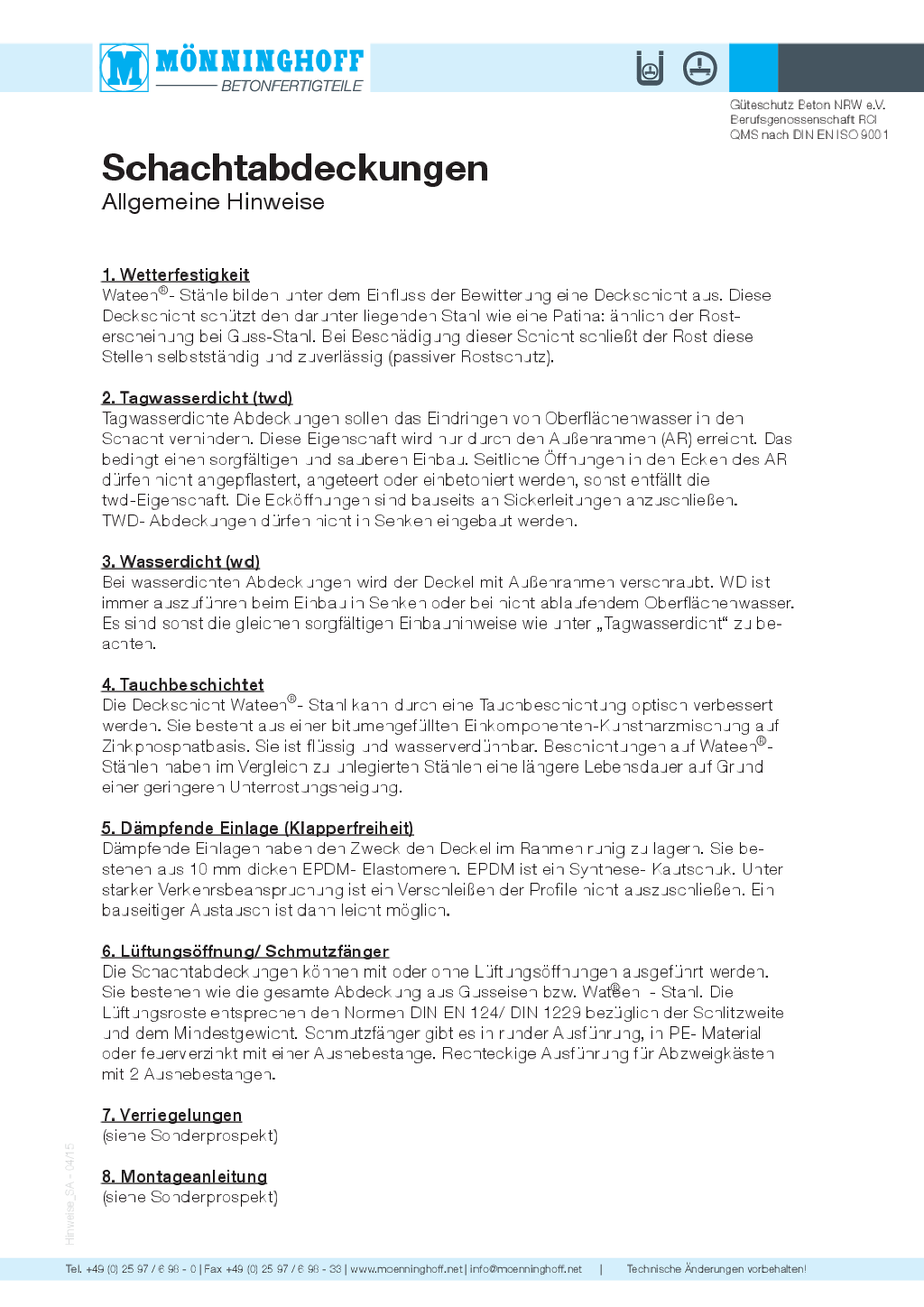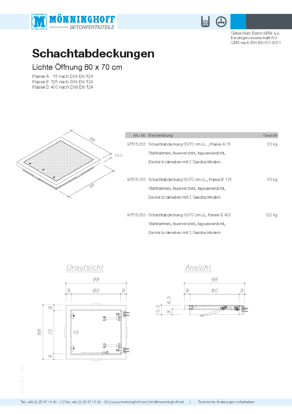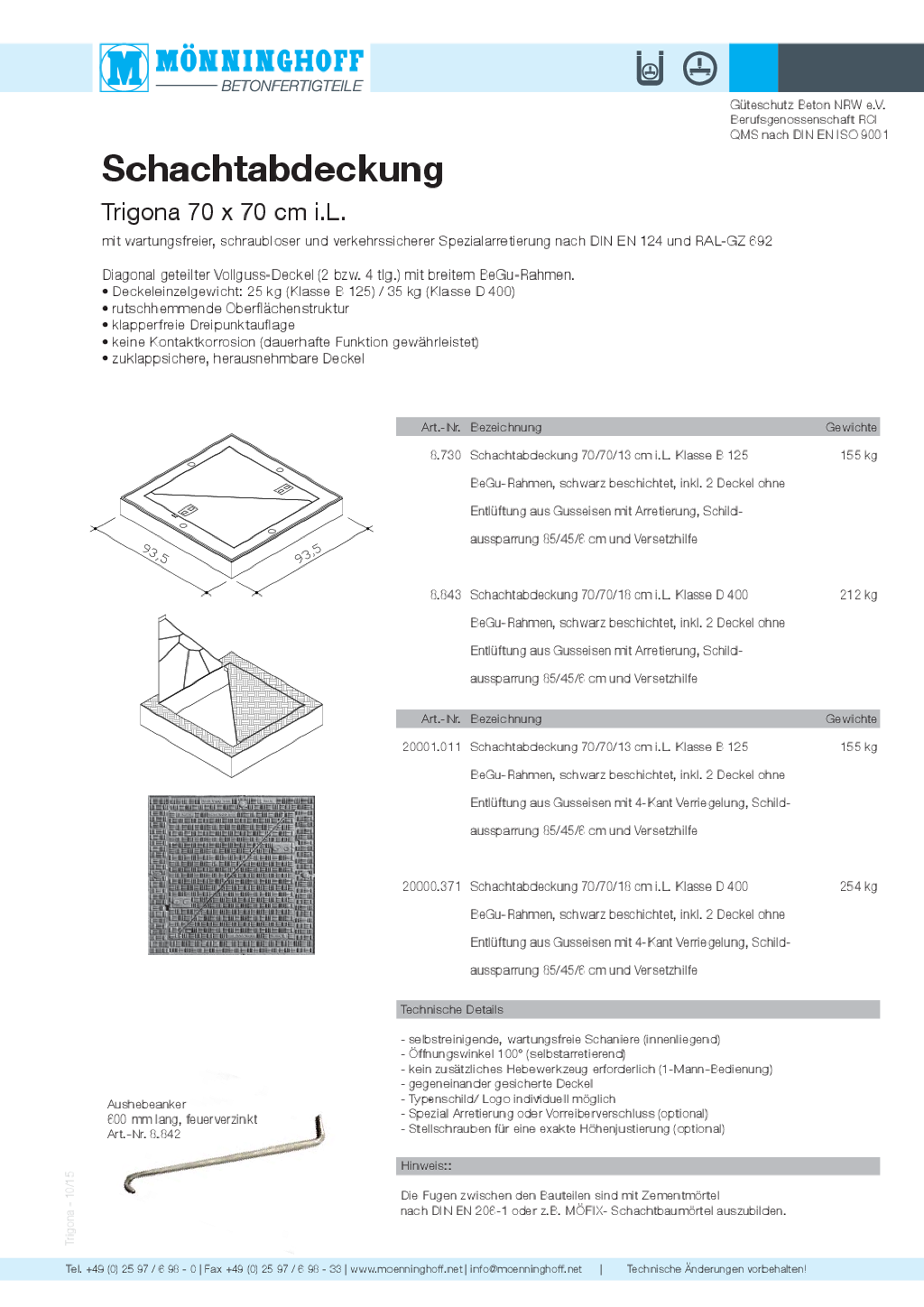 Nachfolgend finden Sie technische Daten, Ausschreibungstexte und sonstige Informationen zu unseren Schachtabdeckungen als Download.