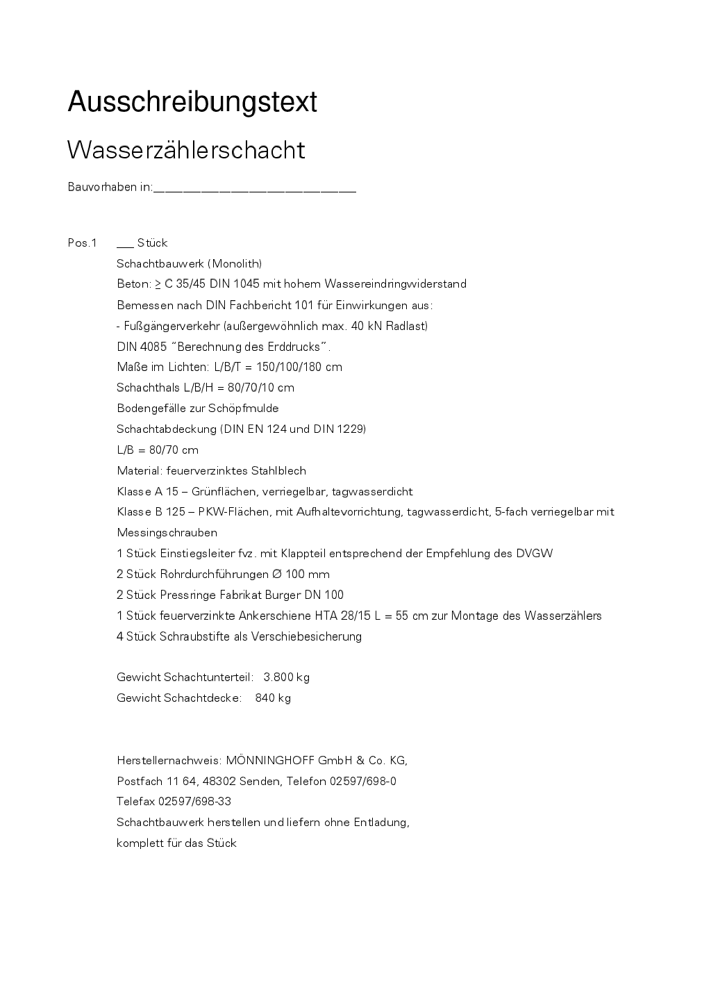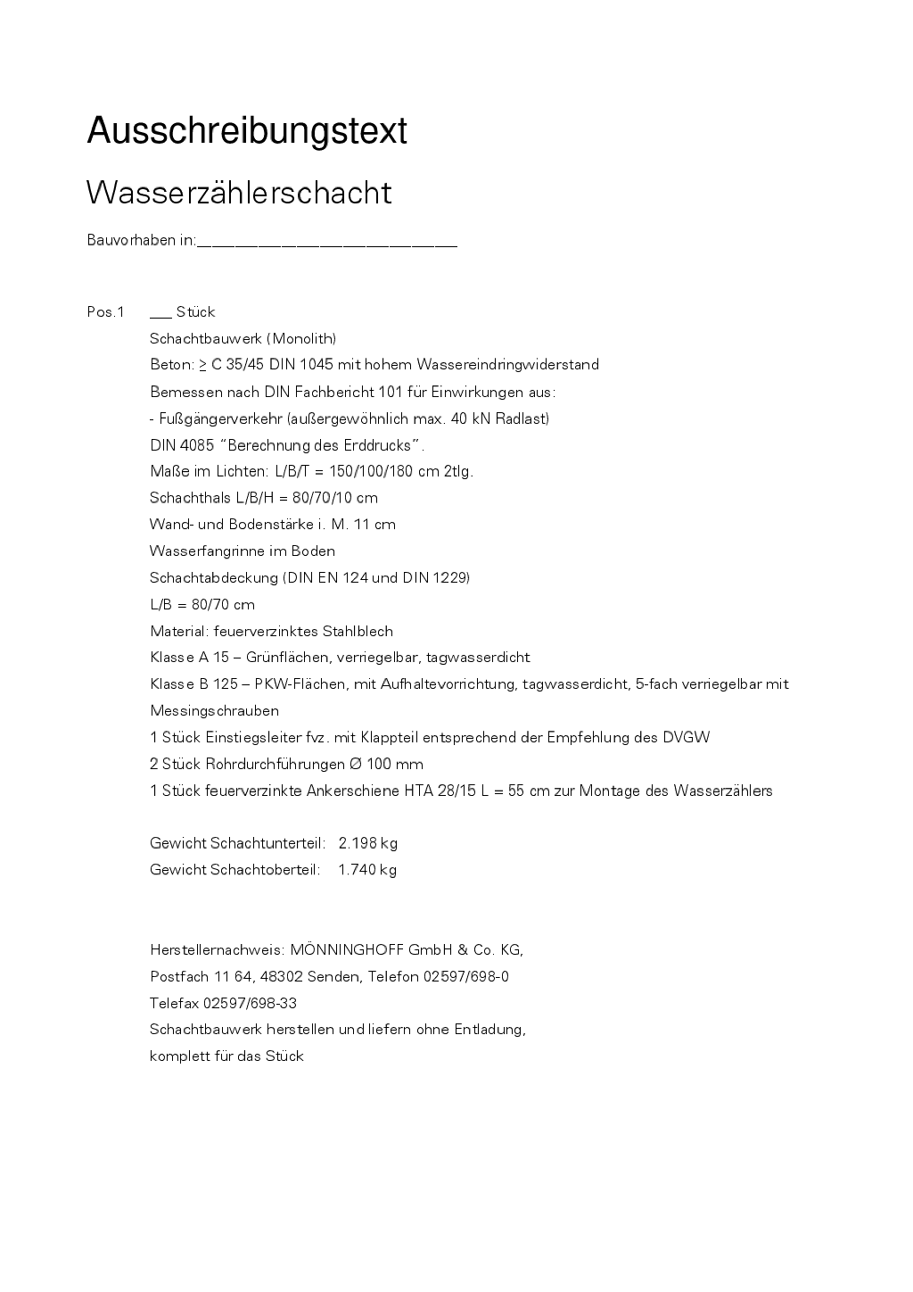 Wasserzählerschacht als Kompaktschacht