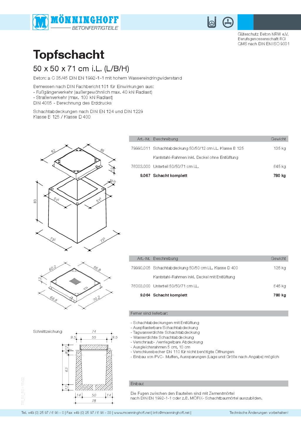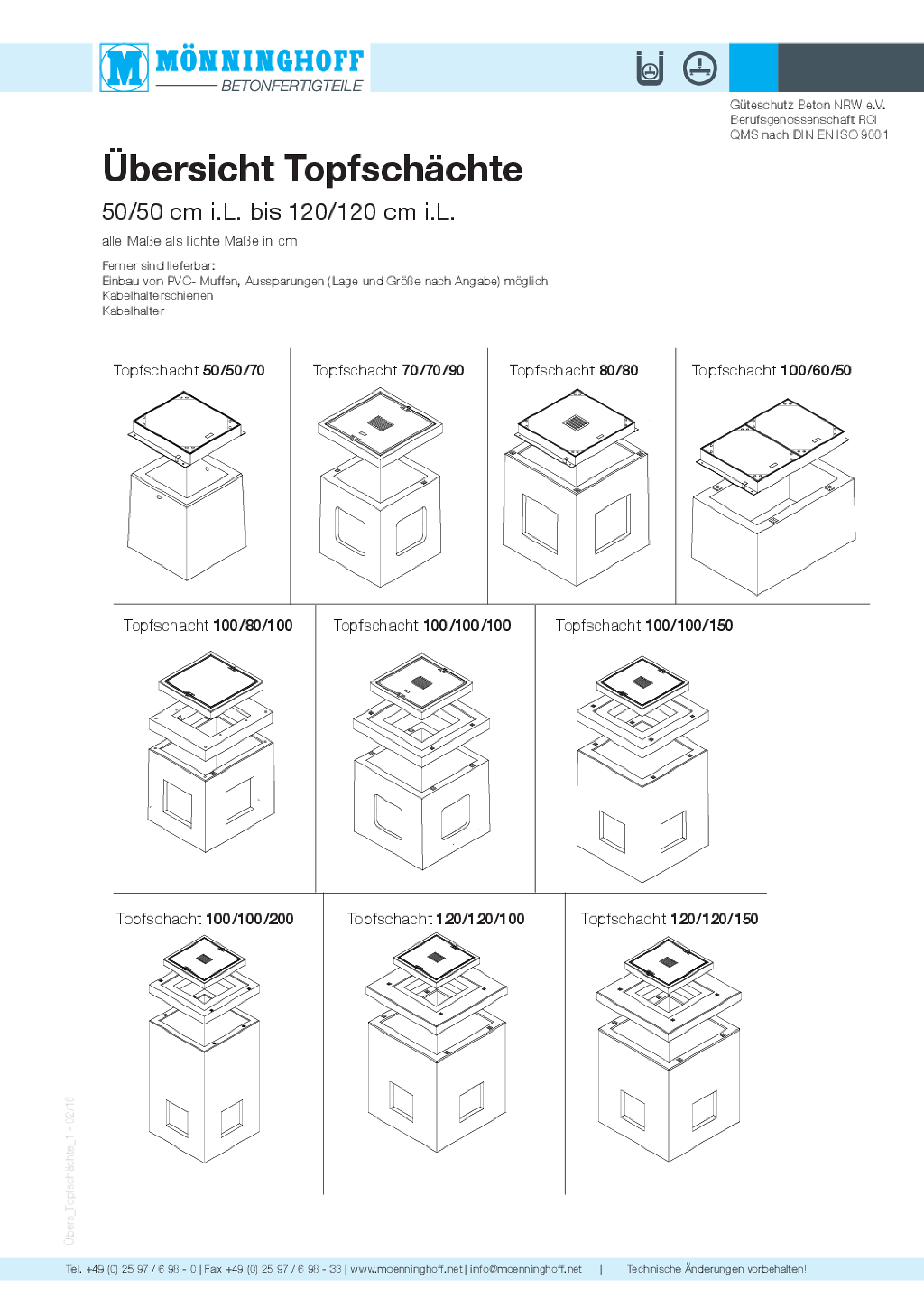 Übersicht Topfschächte 51 / 51 cm i.L. - 125 / 95 cm i.L.