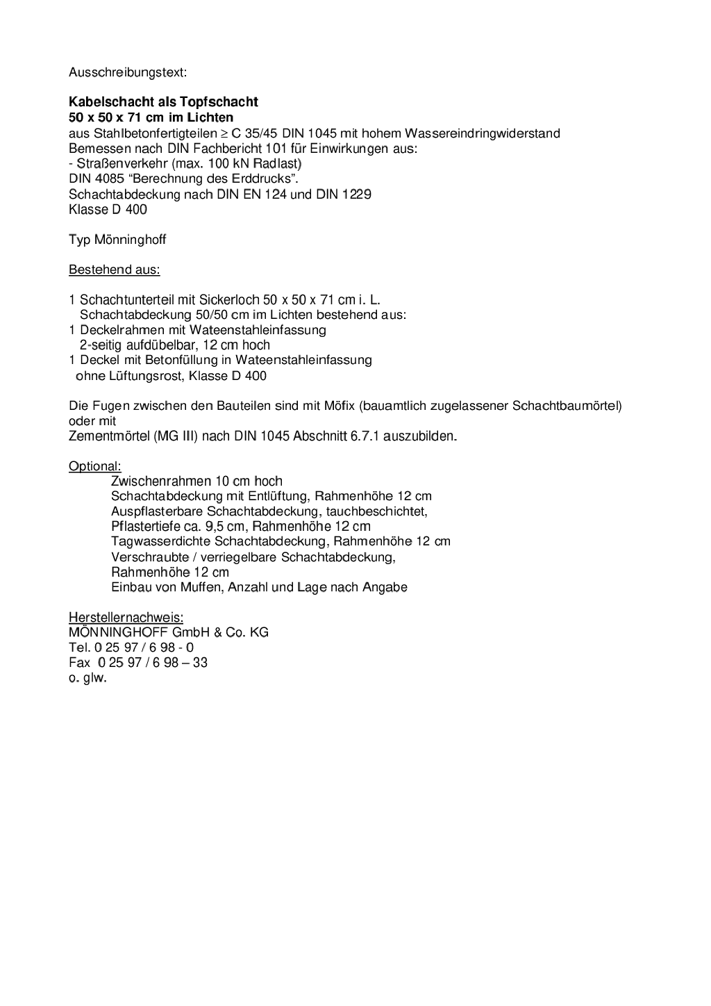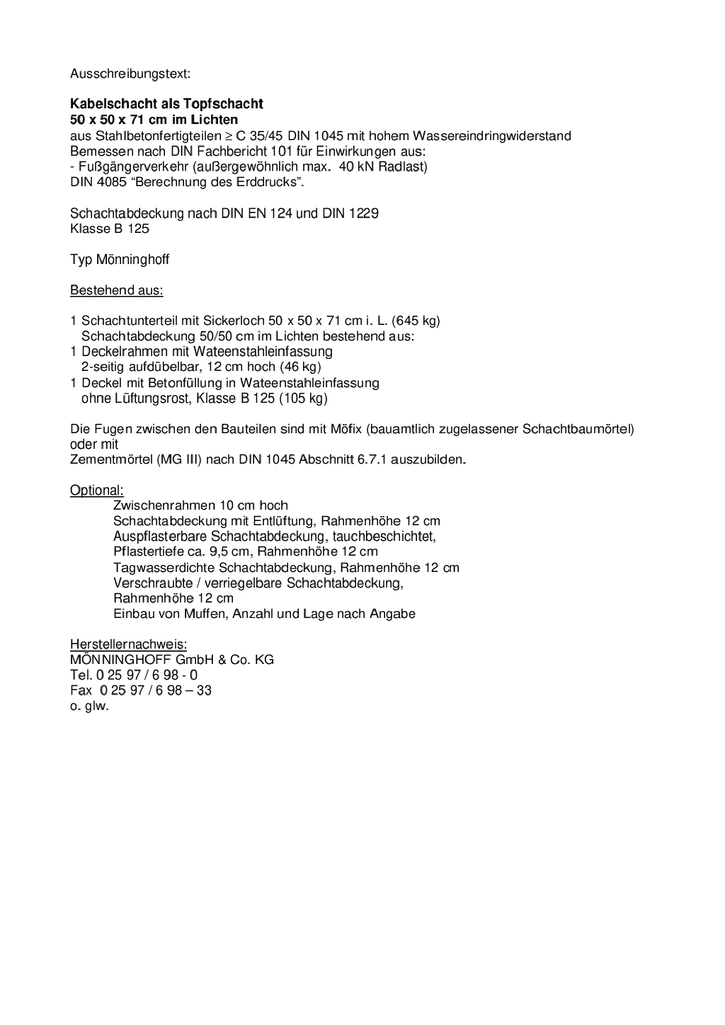 AZK Typ 2002 EP 65 / 60 cm i.L. , Klasse B 125 und D 400